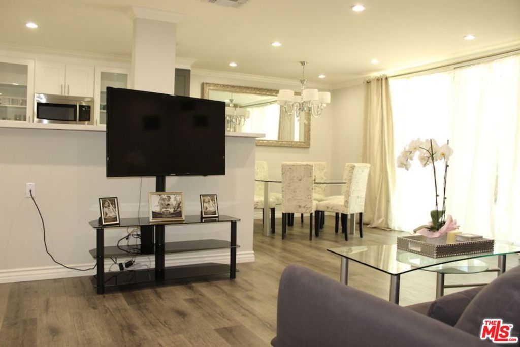 Totally remodeled front facing condo in one of best Beverly Hills adjacent locations, hardwood(laminated) floors, recessed lighting, sound system,totally remodeled kitchen with quartz counter tops and built-ins, remodeled master bathroom with double sink and extra large shower, nice balcony, central heating and air conditioning. Building amenities include 24 hour security, pool, spa, tennis court and gym. Laundry on each floor. Adjacent to Four Seasons hotel and less than a mile from Rodeo Drive, Beverly Center and Cedars sinai hospital. This is a rare opportunity, not to be missed.