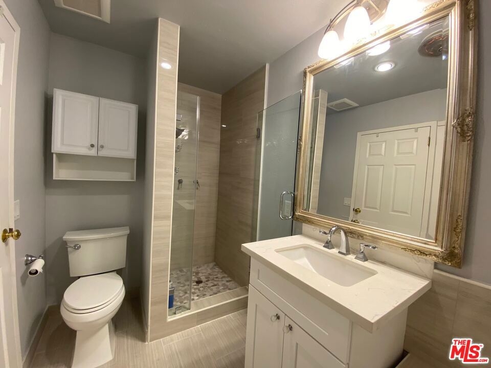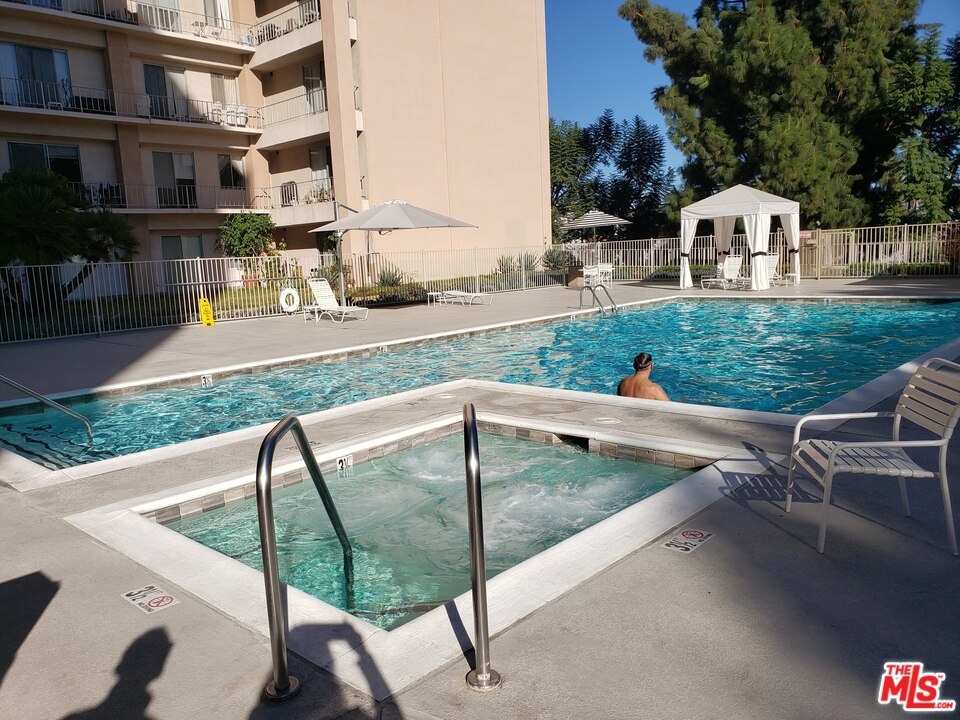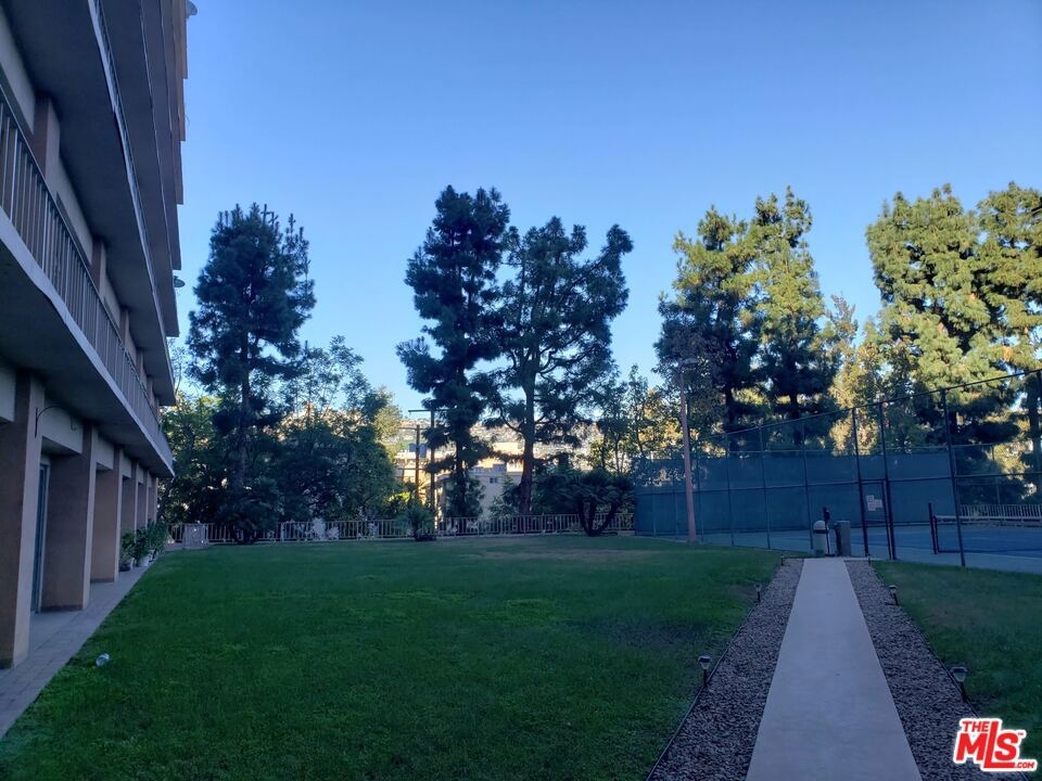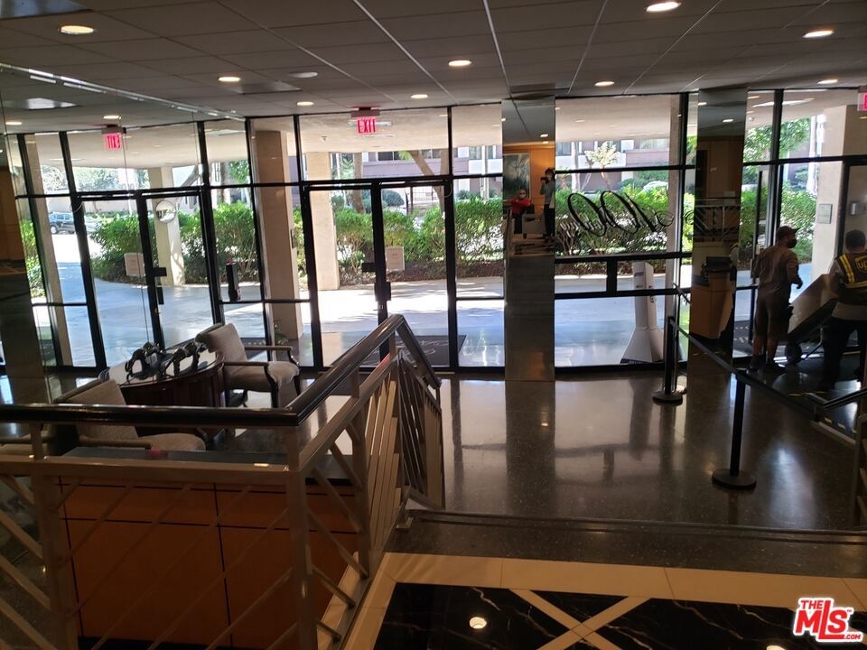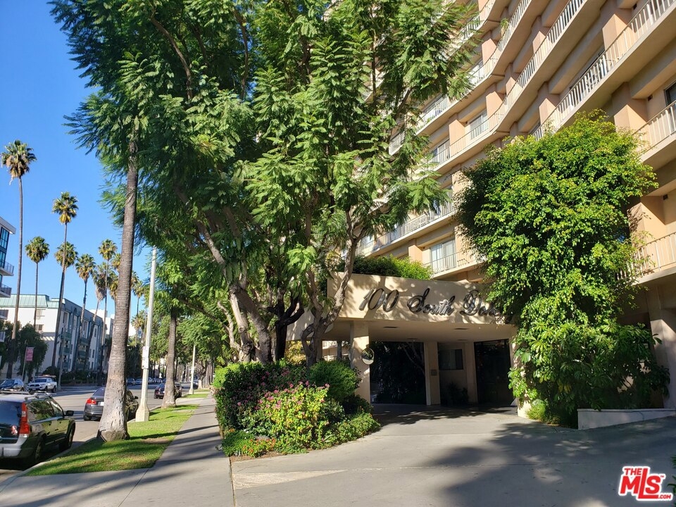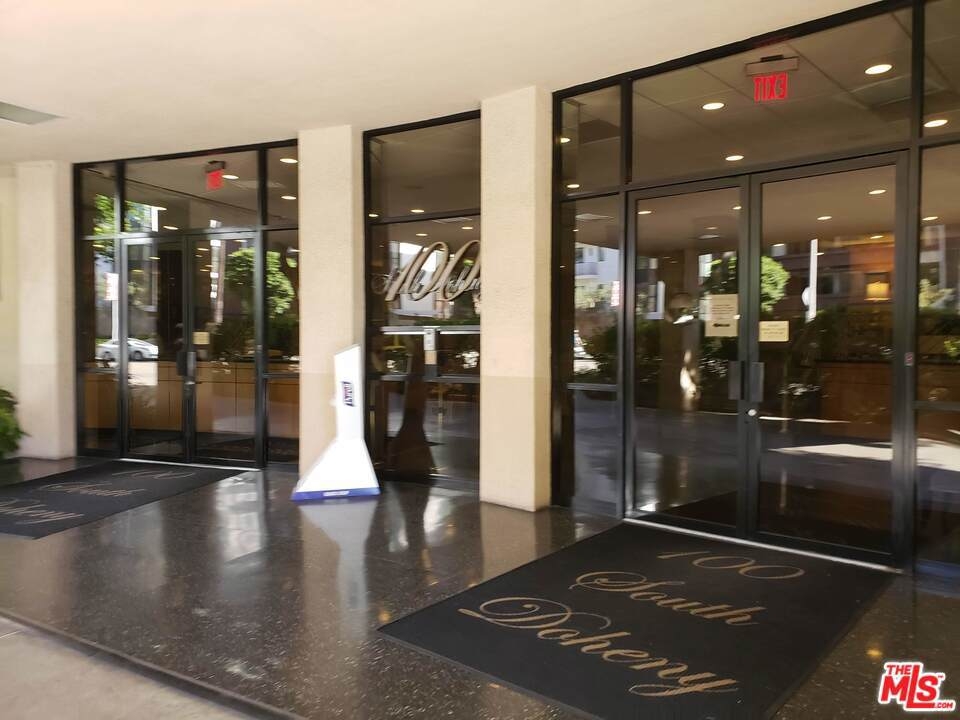 Location, Location, Location!! Near Beverly Hills. 1 bed, 1.5 bath. Kitchen & living room face front of the bldg with views of the Hollywood Hills. Unit has main entrance & a kitchen entrance, balcony, crown molding. Updates: newer paint, plantation shutters, LED Lights, light dimmers, efficient & noise reduction double-glazed windows & newer patio door, tile floors, storage in bedroom, energy efficient water heater, energy efficient quality brand kitchen appliances, energy saver toilets, efficient whisper quiet ceiling fans in both baths, ceiling heater in main bath. Amenities: security gates/entrances w/ cameras, underground garage, electric car charging stations. Pool, spa, and shower. Tennis, gym, dogwalk. Community laundry on each floor w/ trash chute. 24-hr Concierge/Security in Lobby. Conference room & Library. Open Houses: Sat 5/22 & Sun 5/23 12-5 pm.