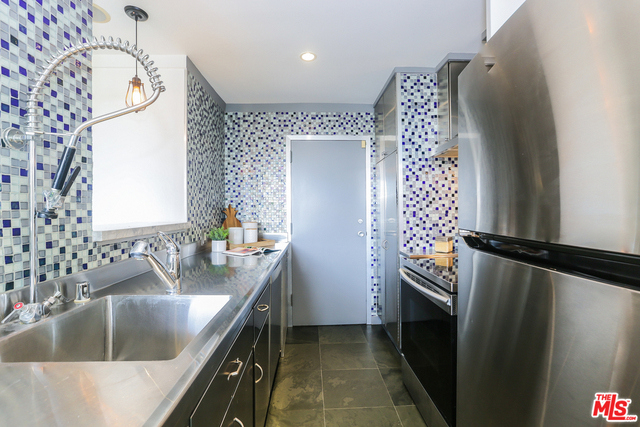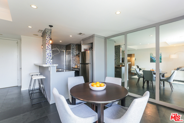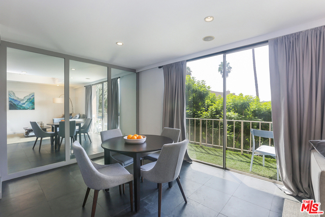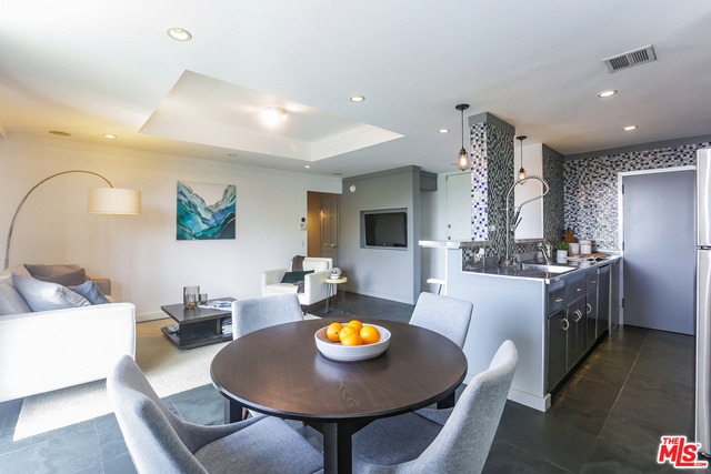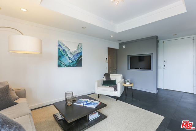 Beautifully remodeled 1 Bd condo in centrally located full service high rise building. Modern designer finishes throughout including Slate floors in living room, stainless steel appliances, and counter tops in the kitchen with mosaic tile back splash. Walls removed on kitchen wall to provide custom breakfast bar and open feel to the living room. Rich wood floors in bedroom with great closet space throughout. Master bathroom has granite counters with separate bath tub and shower adorned with subway tiles. A balcony with westerly green belt and Sunset views to enjoy coffee in the morning and cocktails at night. Located next door to Four Seasons Hotel, close proximity to Beverly Hills , West Hollywood, world class Restaurants, and Cedars Sinai medical center. This luxury building offers 24 hour security, concierge, pool, gym, conference room and tennis courts.