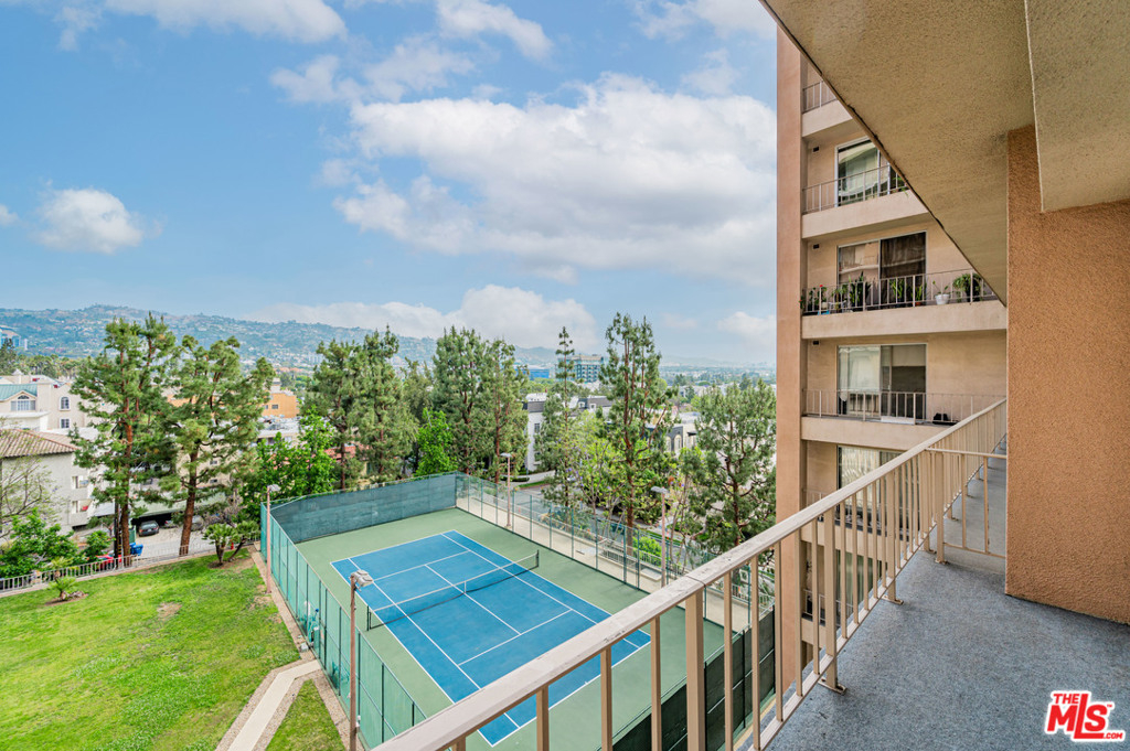 Adjacent to Beverly Hills and West Hollywood, this 1 bedroom + 1.5 bathroom condo is within walking distance to many of LA's best restaurants, boutiques, entertainment venues and coffee shops. The unit, which has views of the Hollywood Hills and sited on the quiet side of the building, provides the perfect escape from the hustle of LA. Notable property details include: air conditioning, smooth ceilings, plantation shutters, an abundance of closet space, spacious balcony, secured one car parking and extra storage. The complex amenities include swimming pool, tennis court, fitness center, 24 hour concierge and library/sitting room.