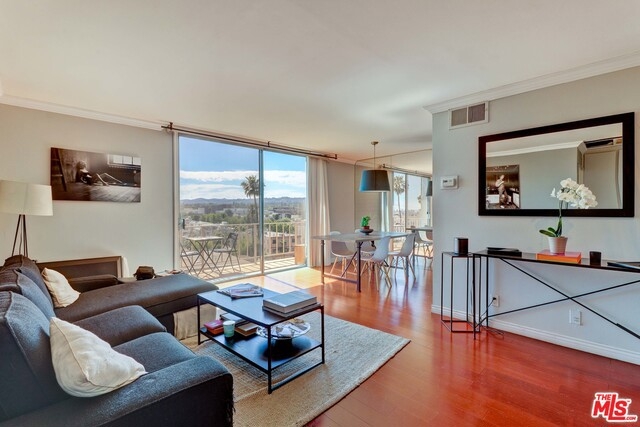 Within walking distance to Beverly Hills, Pacific Design Center, West Hollywood, Four Seasons Hotel, award winning restaurants, Cedars-Sinai Medical Center, coffee shops, shopping, and entertainment venues. A few of the many features for the condo and complex include: 24/7 attended building security, gym, porte-cochere entry with doorman, conference room, tennis court, gallery kitchen with granite countertops, patio with stunning westerly facing panoramic 180-degree views of Hollywood Hills and Century City, open concept living and dining room layout, wood flooring, master bathroom with travertine finishes and his and her's sinks, soaking tub, large floor to ceiling sliding glass door, master walk-in closet, and an oversized master bedroom.