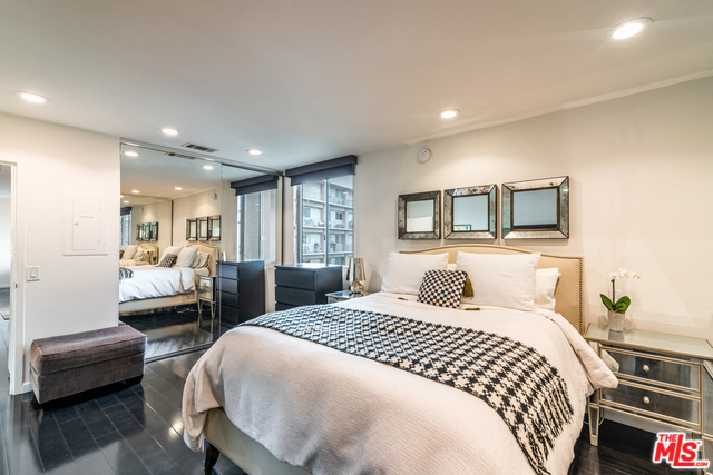 Gorgeous dark hardwood floors, recessed lighting, a fully renovated kitchen & master bath, and over 800 sqft of living space are just some of the wonderful features of this 1 bedroom, 2 bathroom condo on the 9th floor of 100 S Doheny. Breathtaking north-facing view of the Hollywood Hills. Fully updated kitchen w/ stainless steel appliances & checkerboard tile flooring. Dining space w/ a beautiful Restoration Hardware chandelier. Brand new energy efficient double pane sliding glass doors. Separate office space, also w/ access to the balcony. Master bathroom w/ a large glass shower & extra storage space. Ample customized closet space throughout the unit. Building amenities include 24 hour security, pool, spa, tennis court, gym, & laundry on every floor. Two parking spaces plus a storage unit in the garage. Adjacent to the Four Seasons Hotel & less than a mile from Rodeo Drive, the Beverly Center, Santa Monica Blvd, & Cedars Sinai Hospital. This is a rare opportunity, not to be missed!