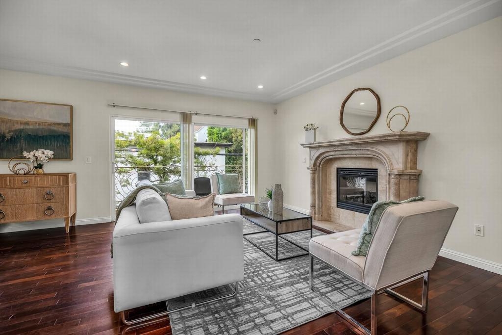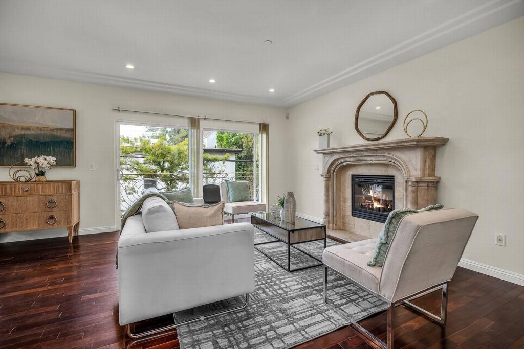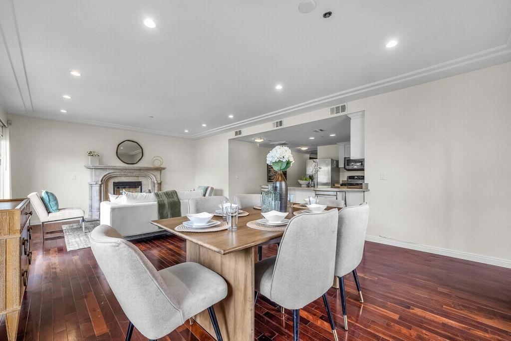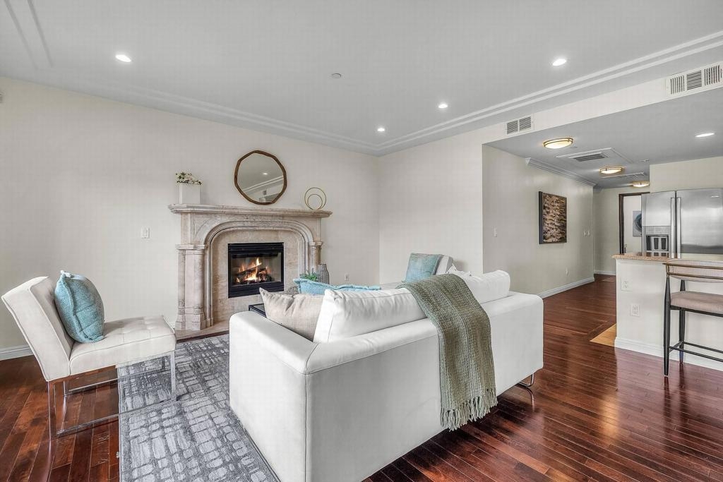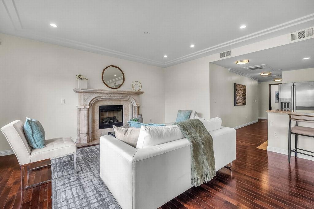 Price Reduction! Motivated Seller! Located in a secured controlled-access building near The Grove, The Beverly Center, Cedar Sinai Hospital, and highly rated school district. This sophisticated 2 bed/2.5 bath condo offers incredible natural light throughout, with an open concept living, dining, and kitchen area as well as a private balcony. The spacious floor plan includes a stylish fireplace, a convenient barstool countertop for extra dining, and elegant hardwood flooring throughout the living, dining, hallway, and bedrooms. The primary bedroom features a luxurious ensuite master bath with a beautifully tiled shower, separate tub, with double sinks and makeup vanity combo. Not to mention the walk-in closet. In the hallway you will find the washer and dryer units convenient for your laundry needs. The controlled-access parking garage includes two parking spots for this unit. This one-of-a-kind unit is a must-see! Recent SB326 Balcony Inspections with no deficiencies. Unit is Turnkey.
