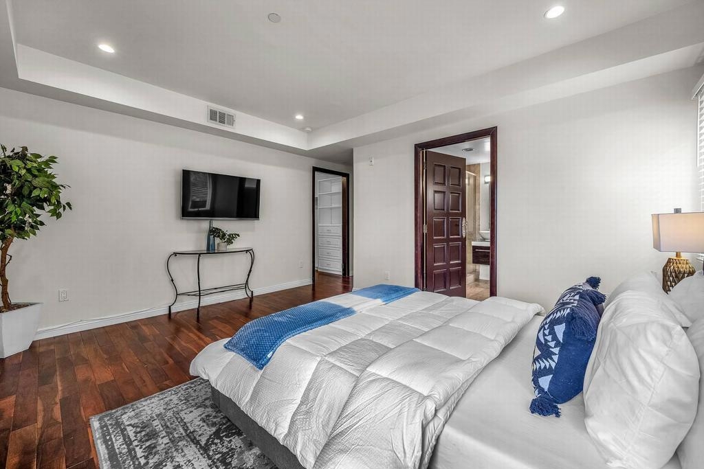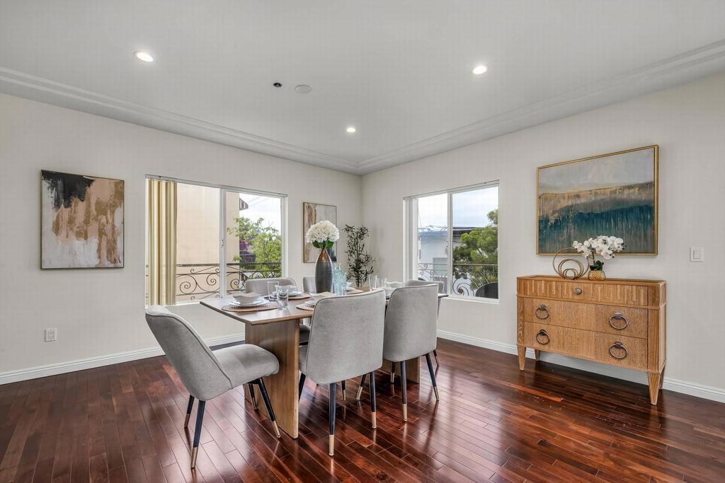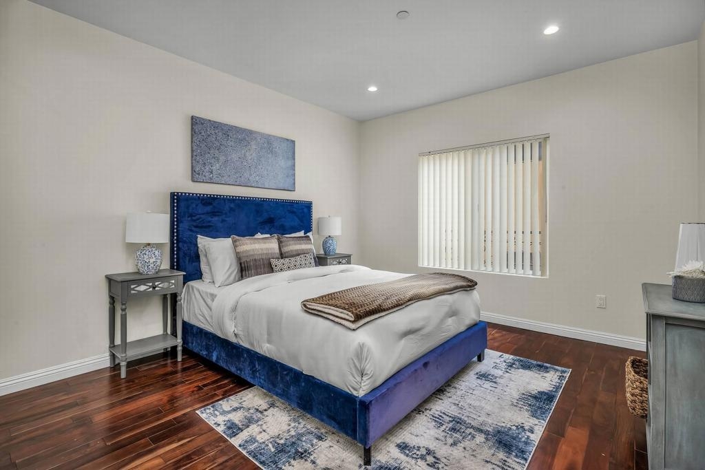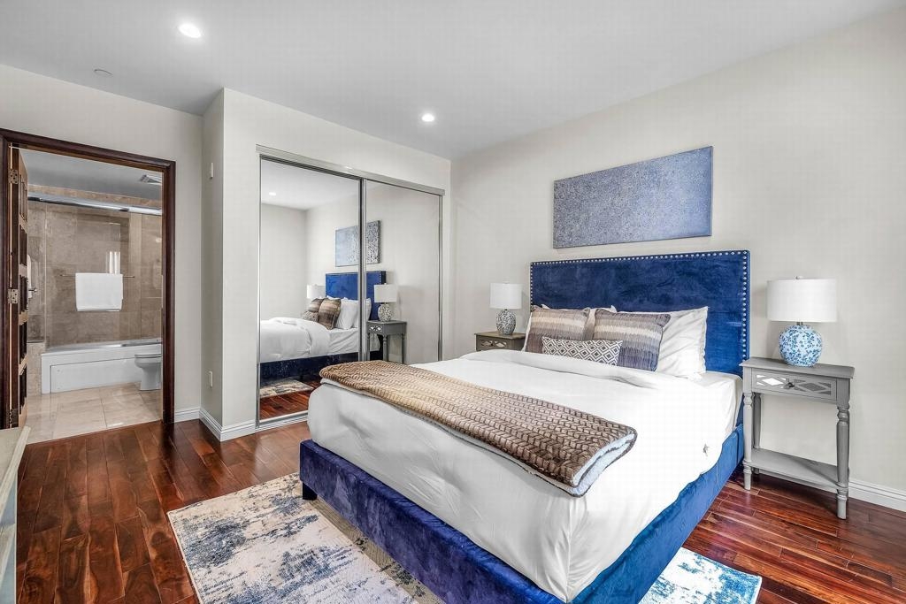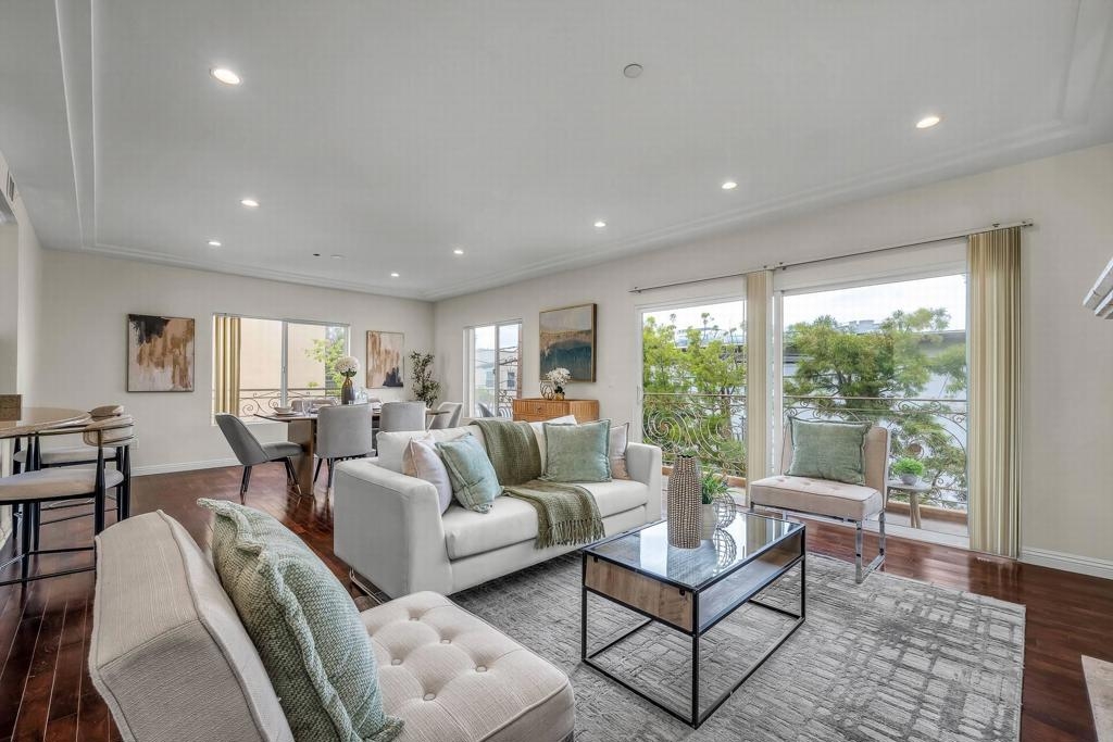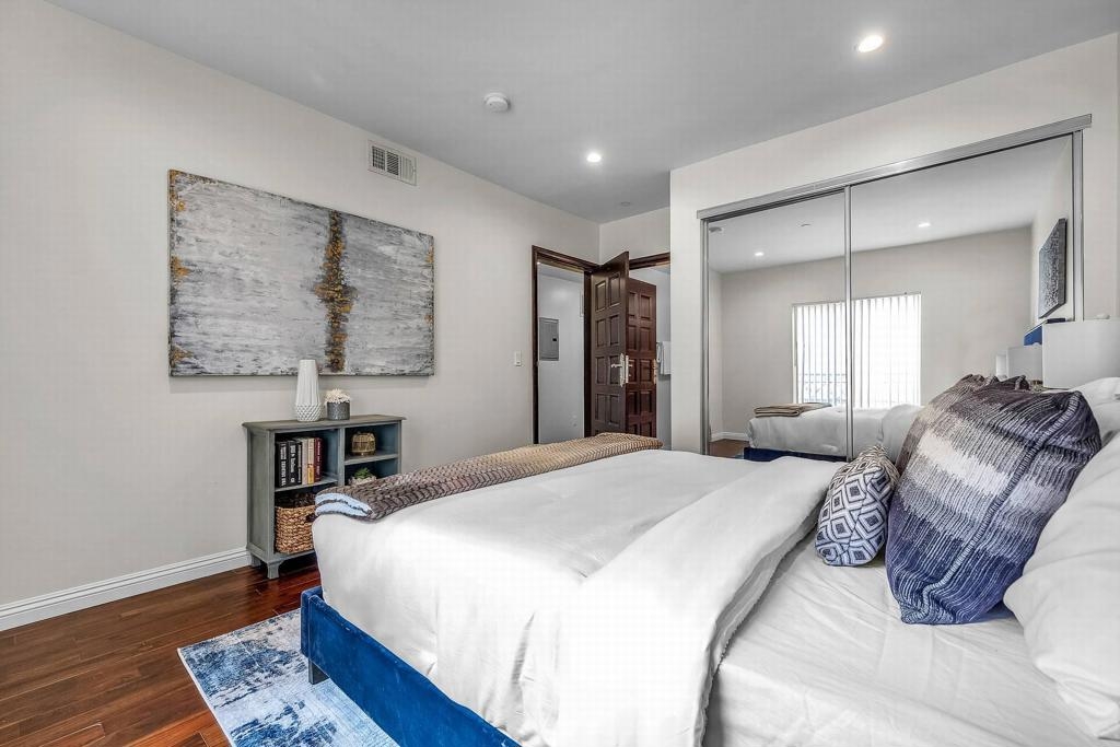 Price Reduction! Motivated Seller! Located in a secured controlled-access building near The Grove, The Beverly Center, Cedar Sinai Hospital, and highly rated school district. This sophisticated 2 bed/2.5 bath condo offers incredible natural light throughout, with an open concept living, dining, and kitchen area as well as a private balcony. The spacious floor plan includes a stylish fireplace, a convenient barstool countertop for extra dining, and elegant hardwood flooring throughout the living, dining, hallway, and bedrooms. The primary bedroom features a luxurious ensuite master bath with a beautifully tiled shower, separate tub, with double sinks and makeup vanity combo. Not to mention the walk-in closet. In the hallway you will find the washer and dryer units convenient for your laundry needs. The controlled-access parking garage includes two parking spots for this unit. This one-of-a-kind unit is a must-see! Recent SB326 Balcony Inspections with no deficiencies. Unit is Turnkey.
