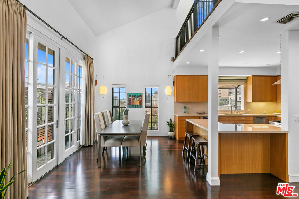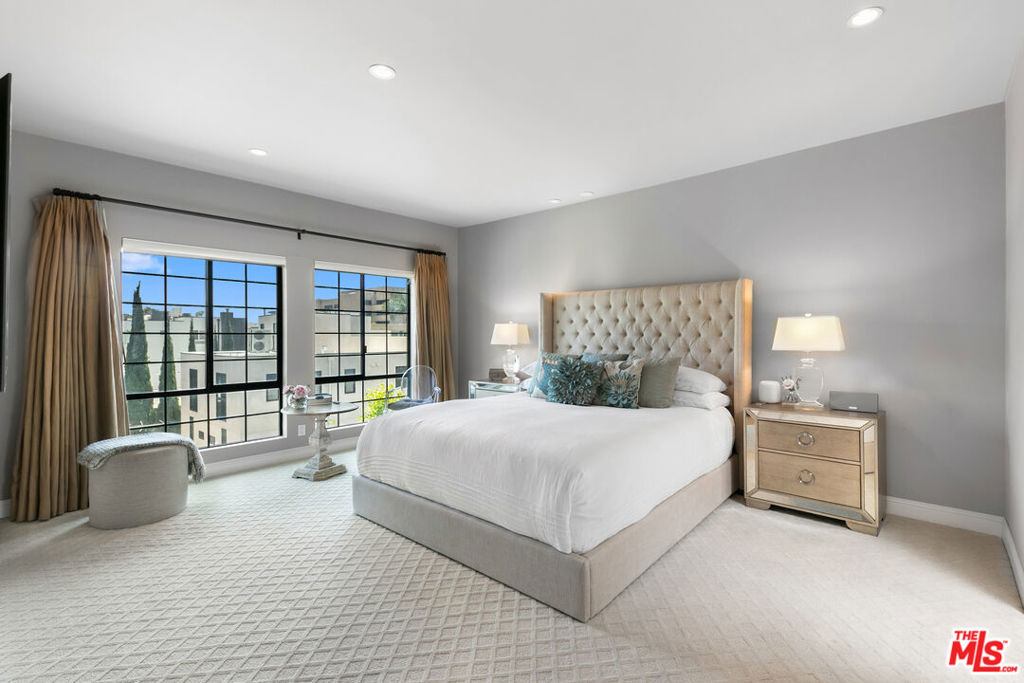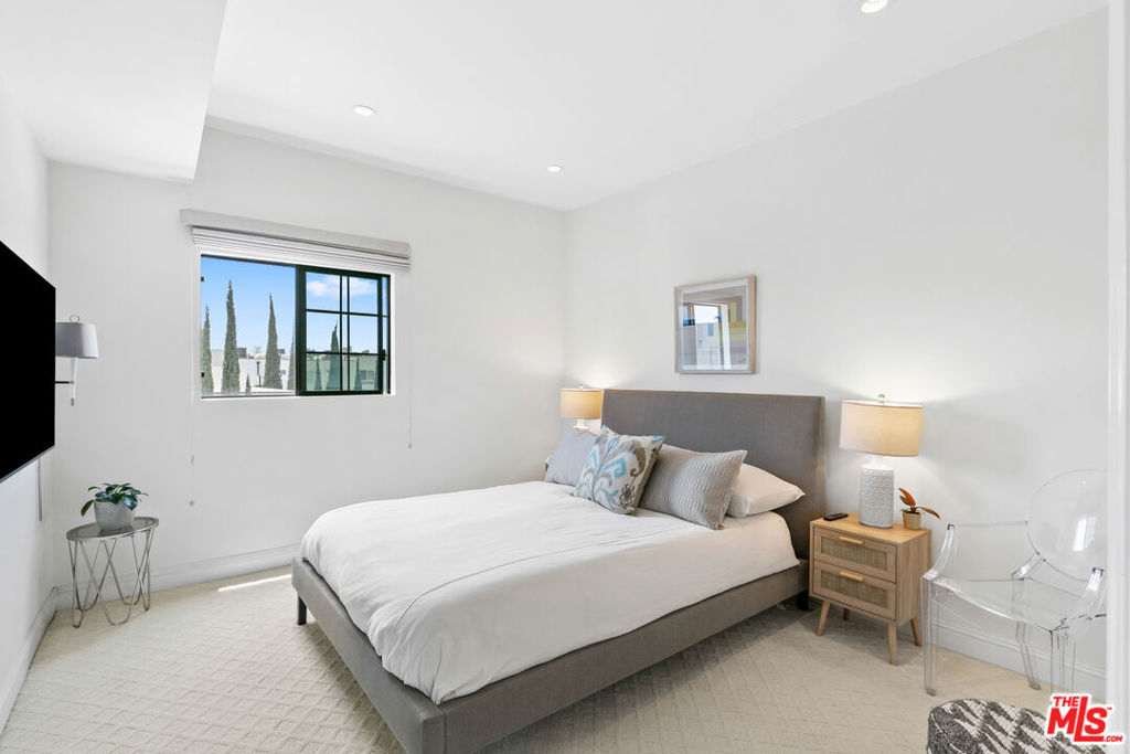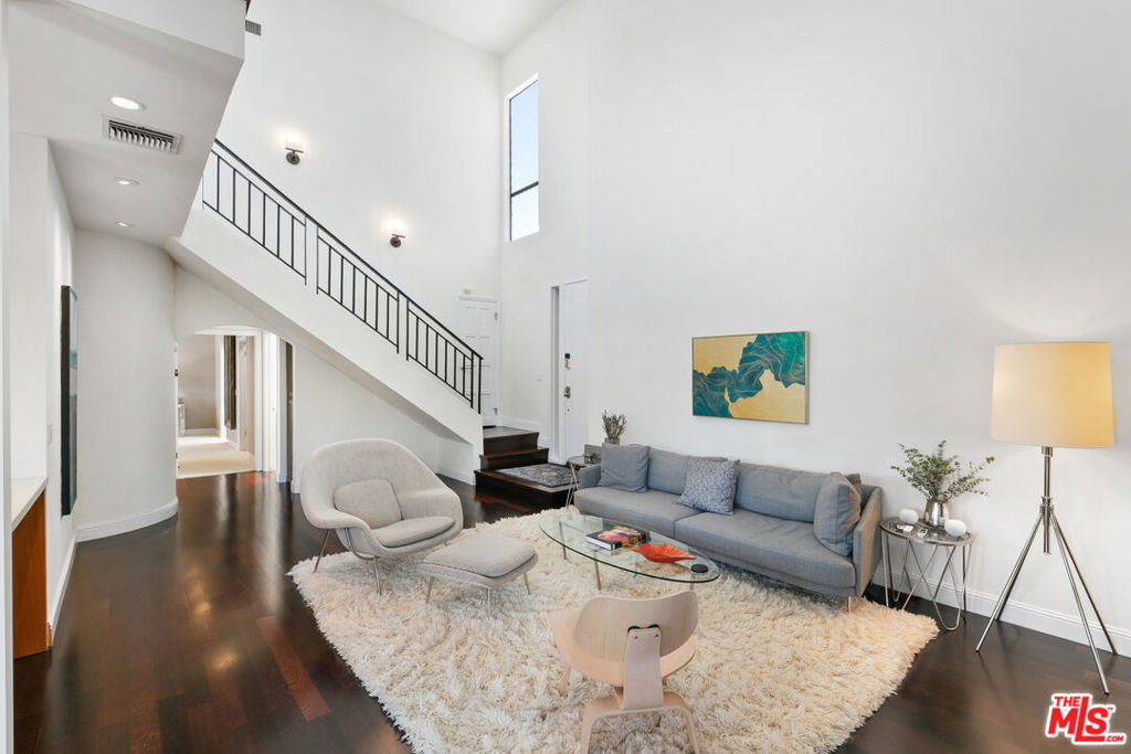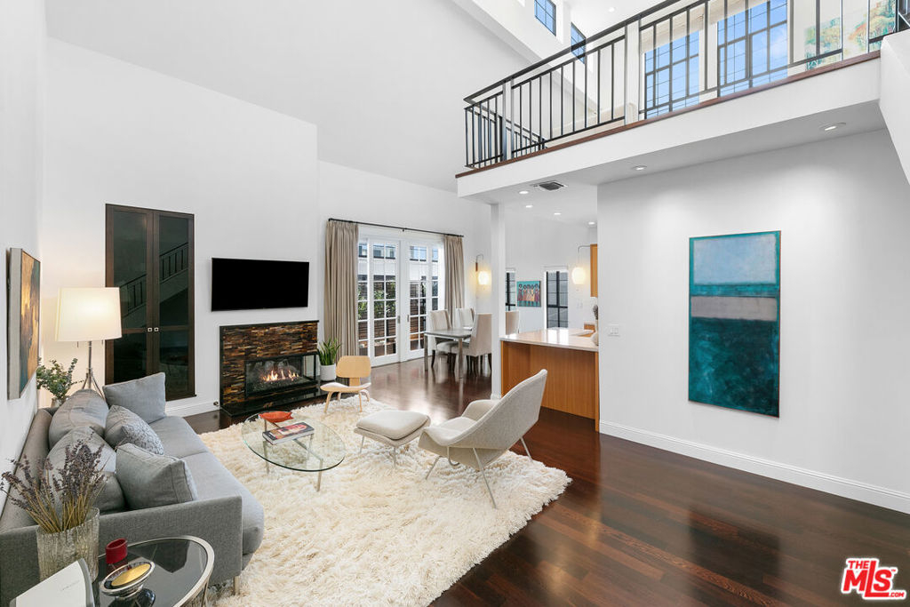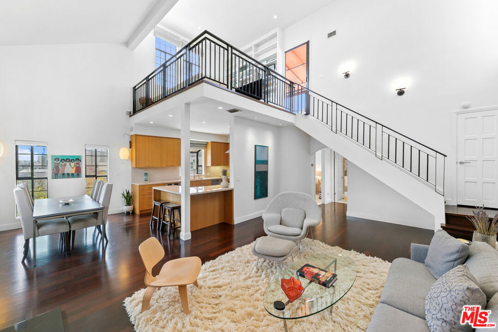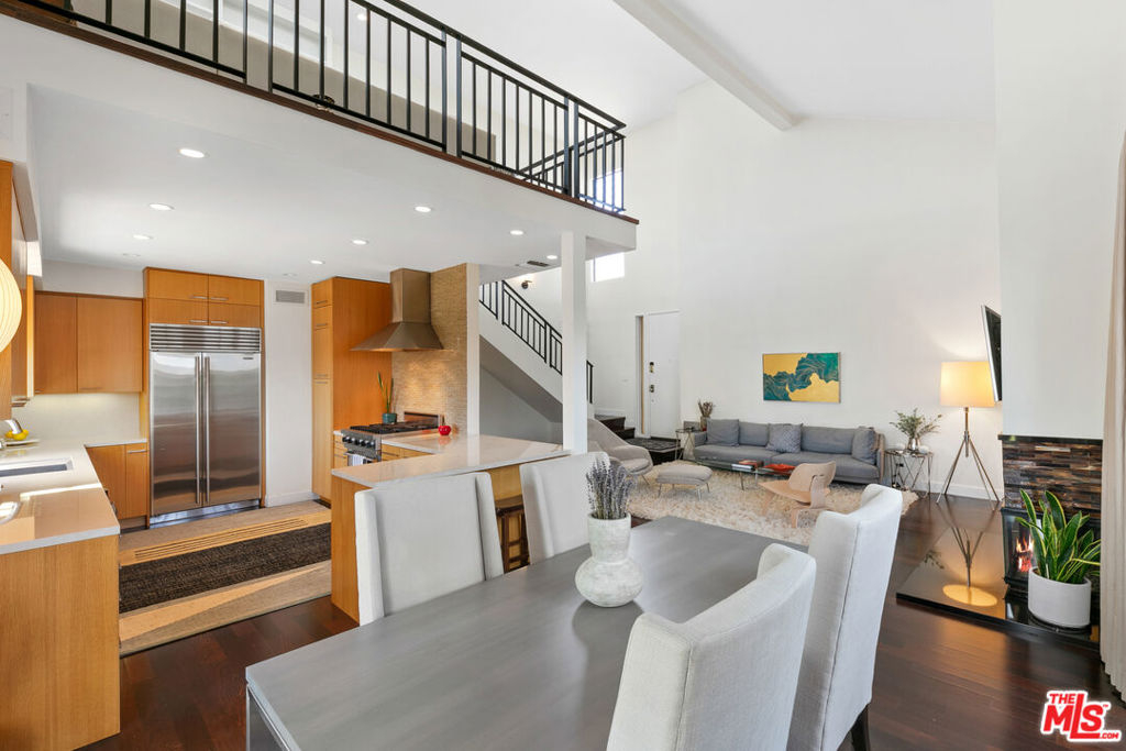 Experience refined living in this rare two-story penthouse at 412 Arnaz Dr. Positioned on the top floor, south-facing corner, this light-filledresidence offers dramatic soaring ceilings, expansive feeling open-concept living, and upscale designer finishes all just moments from Beverly Hills, TheBeverly Center, West Hollywood, and world famous Los Angeles restaurants. Step inside to discover a spacious and sophisticated floor plan, ideal forentertaining. The main level features a modern chef's kitchen with limestone countertops, Sub-Zero refrigerator, Viking range, Miele dishwasher, andabundant cabinetry, all flowing seamlessly into the open living and dining areas. Oversized windows capture brilliant southern light and showcase thehome's stunning volume and scale. The first floor also includes two generously sized bedrooms and two beautifully updated bathrooms, including aluxurious primary suite with a huge cedar-lined walk-in closet and spa-like bath. The second bathroom features a glass-enclosed oversized tiled showerand a large vanity with sleek finishes. In-unit laundry, custom storage, and warm wood floors complete the level. Upstairs, a stylish loft with built-in shelvingoverlooks the living room and offers the perfect space for a home office, library, or media lounge. Step outside to your private covered rooftop deck perfectfor outdoor dining, entertaining, or simply relaxing with expansive city views. A rare bonus storage room off the deck adds even more convenience,offering space few condominiums provide.One of the most unique features of this penthouse is the private two-car garage with direct access to thebuilding lobby an extremely rare amenity in condo living. The garage is equipped with EV charging outlet, offers additional room for storage, and is accessed from the side street.Located in a secure, well-maintained building in one of Los Angeles' most sought-after neighborhoods, this stunning penthouse is Beverly Hills adjacent, close to shopping, fine dining, galleries, and major studios.