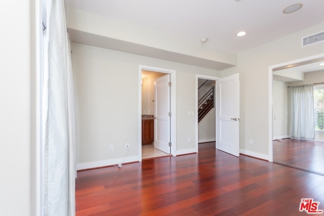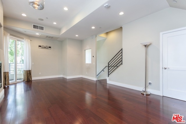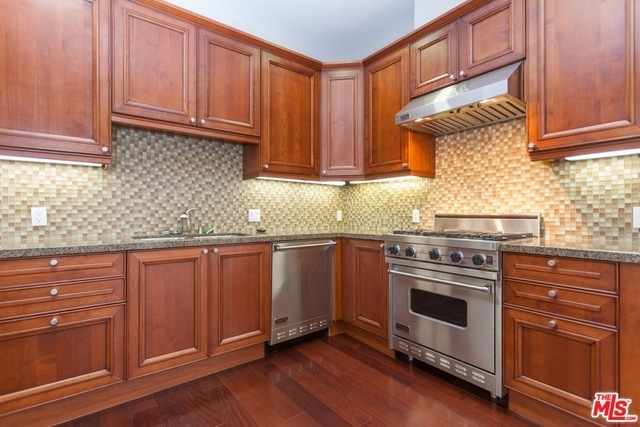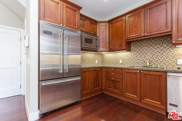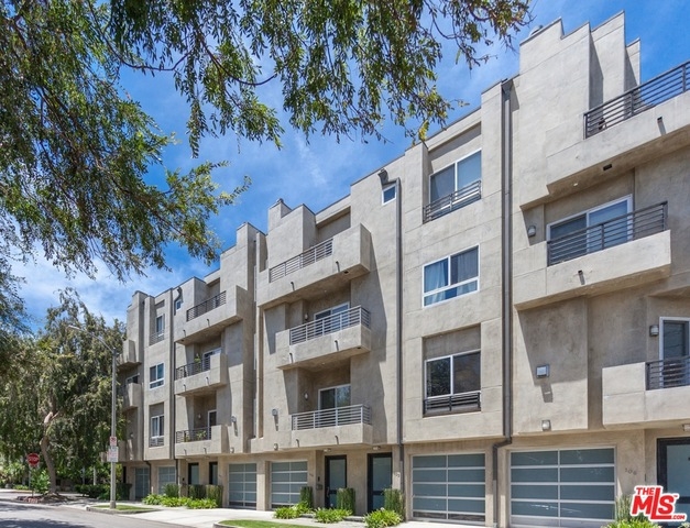 Stunning 3 bed/4 bath end unit townhouse in idyllic location close to trendy Robertson and Beverly Blvd. retail districts. The home features high ceilings, balconies on 3 levels, recessed lighting and a refreshingly modern design. All bedrooms are en suite. The master retreat is one whole floor; complete with walk-in closet, luxurious bath with separate shower and spa tub, fireplace, and wrap around private balcony. Gorgeous, newly reappointed kitchen, with high end appliances and tile back splash, is open to dining and living areas; ideal for entertaining. Video enhanced security intercom, Nest control systems, 2 zone A/C, and a two car private garage complete offering.