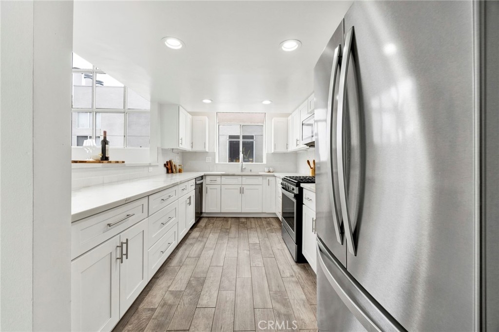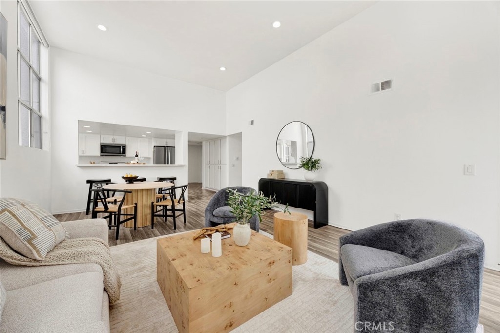 Perched on the top floor of the Beverly Shenandoah, this bright and spacious 2-bed, 2-bath private end unit condo offers refined living in the heart of Pico-Robertson. With approximately 1,243 square feet of thoughtfully renovated space, you’ll step into an airy open-concept living and dining area, featuring high ceilings, oversized windows and a cozy fireplace. The remodeled kitchen is a chef’s delight, equipped with stainless steel appliances, ample cabinetry, and quartz countertops featuring an eat-in peninsula. Enjoy the convenience of in-unit laundry and updated central heating and air conditioning. The primary suite is a serene retreat, boasting generous walk-in closet space and an updated en-suite bathroom with dual sinks with a separate tub and shower. The second bedroom and bathroom offers flexibility for guests or a home office. Additional highlights include a private balcony, perfect for morning coffee or evening relaxation, and two tandem parking spaces in a secure garage. Situated just minutes from Beverly Hills, The Grove, and the vibrant dining and shopping scenes along Robertson and La Cienega Boulevards, within walking distance to Beverly Hills Tennis and Wilshire/La Cienega Metro station, this condo offers a rare Penthouse opportunity and the best of Los Angeles living!