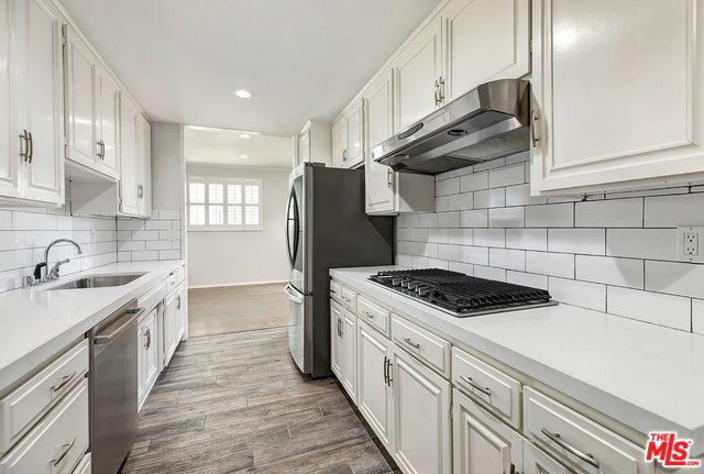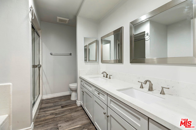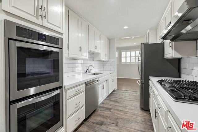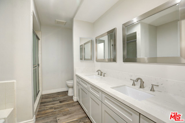 Welcome Home to this Beautiful and Large one Level Condo that feels like a Home. Formal Entry with Hardwood Floors and Two Extra Large Walk in Closets. Hallway leads to Remodeled Kitchen with Quartz Counters, Eat in Kitchen and Large Separate Dining Room. Extra Large Family Room with Gas Fireplace and Wet Bar. Lots of Natural Light with Custom Window treatments and Shutters. Balcony off the Family Room that overlooks the Pool. Two Very Large Bedrooms with New Carpet and walk in closets. Hallway features wall of cabinets great for storage. Master Bathroom has double vanities and separate tub and shower. Close to West Hollywood and Beverly Hills. Security Building with Gated Garage and tandem parking. The Building features: Heated Pool, Spa, Excercise Room, and Meeting Room that can be used to entertain. This Building is Walking Distance to Shops on RObertson, Trader Joes, the Beverly Center, and Cedar Sinai Hospital. This is a Wonderful Unit in a very Classy Building.