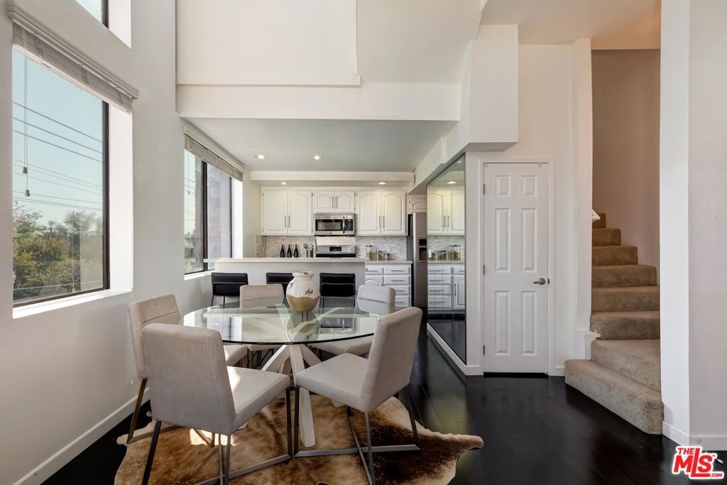 With impossibly high ceilings and wall to wall glass doors/windows that bask the entire space in glorious natural light, this split-level condominium is the essence of smart and stylish city living. There are two bedrooms, each en suite with a bathroom and lovely views. Theres a cozy living room with a fireplace and a wrap around balcony. The kitchen is modern, bright and airy offering clean white Caesarstone countertops, convenient breakfast bar and all stainless Frigidaire appliances. Midway upstairs you'll find a loft office with customized built in bookshelves and a private bathroom. A few more steps beyond, open the door to a fantastic rooftop deck with city views as far as the eye can see, ideal for sophisticated social get-togethers, sunbathing or nighttime stargazing. Additional amenities include: in unit washer/dryer, secure entry, 2-car garage parking and plenty of storage. Ideally located on a quiet residential street near Beverly Hills, make this fabulous condo your next home!