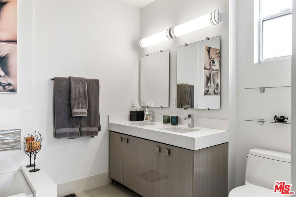 Third Street, Beverly Center, and The Grove are just a whisper away from this spectacular, modern 3-bedroom/3-bathroom condo. Boasting the largest floorplan in the building this west-facing, corner unit contains a unique double-master configuration. Like to entertain? Then the bright, spacious kitchen and open floor plan will suit you perfectly. Built in 2013 this exquisitely designed property features 7" wide French White Oak wood flooring, Wenge Wood cabinets, GE Monogram appliances, Grohe bath fixtures, Kohler sinks, and Italian Porcelain tile. Relax on your balcony enjoying gorgeous hillside and city views or take advantage of the large sunning deck and Rec Room featuring Table Tennis, Foosball, TV lounge, and kitchenette. This rare home is a short stroll or roll to some of the best dining and shopping areas this city has to offer.