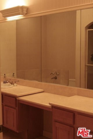 Very desirable front facing unit with large balcony. Extra high ceilings. Side by side gated parking for two cars. Grand foyer. Spacious living room with large fireplace. Generous master suite with walk in closet and spa like bath. Second en-suite bathroom. Powder room. Inside laundry. Storage room. Great location in quiet building within walking distance to Cedars, Beverly Center, Melrose, Robertson and Santa Monica. Trendy neighborhood with excellent shops and dining. Complex has pool, conference room and gym. Comfortable floorpan. Well maintained unit but requires updating.