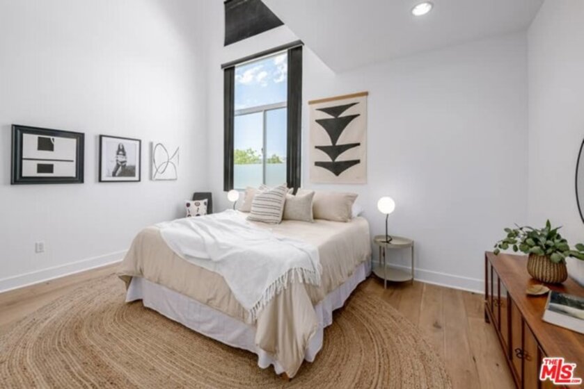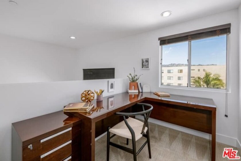 A modern aesthetic and luxury design details are enjoyed throughout this newer, open floor-plan townhome within walking distance to the 3rd Street district and Beverly Center. The modern-contemporary space has it all: 3 bedrooms, 2.5 bathrooms, plus a separate office and private roof deck. A spacious gourmet kitchen with Viking range/oven, stainless steel appliances, quartz counters, tiled backsplash, custom glass cabinets and counter bar seating. Ideal for entertaining, the main living space includes an open dining area and spacious living space accented with wide plank white oak floors, fireplace and recessed lighting. A patio off the living room is perfect for a private garden and BBQ. Upstairs, a large main suite welcomes with 20"-high ceilings, custom walk-in closet, dual sink vanity, separate tub and shower. Two additional bedrooms, bath and inside laundry complete the private quarters. Above, is an office with views of the Hollywood Hills and a private rooftop sundeck with a projector to enjoy outdoor movies. Pre-wired alarm systems. Secured lobby and gated parking with additional guest spaces. Low HOAs. Nearby some of the area's most popular restaurants and exclusive boutiques.