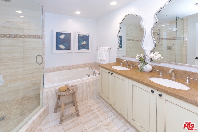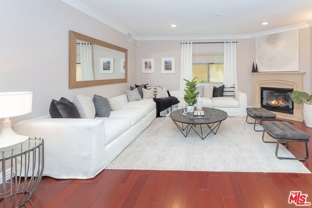 Impressive 3 bedroom 2.5 bath rear corner unit with the best of California indoor/outdoor living & an enormous wrap-around patio ideal for entertaining! Great location, functional/open floor plan, spacious eat-in gourmet kitchen w/ Viking Stove, Vera Gold counters & Italian cabinetry. Master bedroom boasts 2 walk-in closets, luxurious spa-like master bathroom w/large shower, soaking tub, and double sinks. All baths feature Italian Noche counter-tops. New hardwood floors and carpet in the bedrooms. In-unit laundry closet, gas fireplace & 2 parking spaces. The building has Secured Access, Fitness Center & Earthquake Insurance. Great Location! 2 blocks from Robertson's trendy restaurants & shopping, Beverly Hills adjacent, a short walk to the Beverly Center, West Hollywood night life, Bristol Farms & Cedar Sinai. (Gated outdoor patio not deeded to the unit. Seller & sellers agent do not guarantee, square footage, lot size, or any other details. Buyer to verify all and satisfy themselves.)