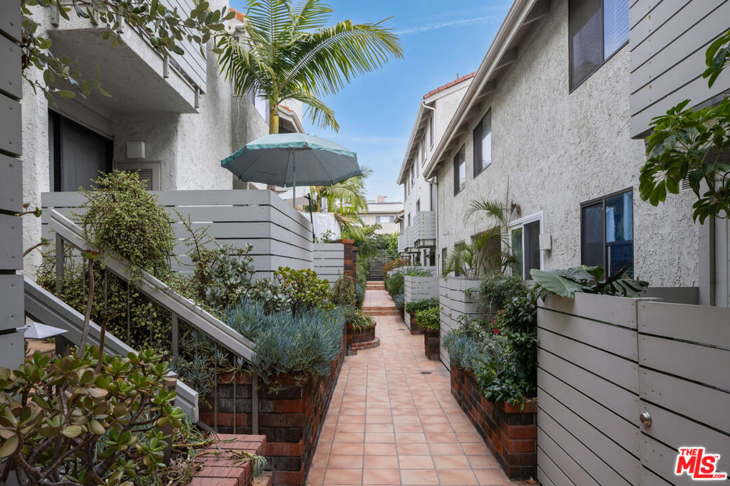 Contemporary Courtyard Townhome. Ideally located in one of the most sought-after neighborhoods this contemporary garden-style townhome is two blocks from Beverly Hills. Through the gated front entrance arrive into a unique open-air lushly landscaped courtyard with succulents and palms. The first level is a bright open-concept floor plan featuring a spacious living room with corner fireplace and private patio perfect for alfresco dining. The modern kitchen features a beautiful waterfall carrera-quartz sit-at countertop, geometrical tiled backsplash, stainless appliances with gas stove, and wall pantry for extra storage. The adjacent breakfast nook with a glass sliding door provides additional natural light throughout. A formal dining space or work-from-home office area hosts a wet bar and powder room. Ideal for entertaining and enhanced by hardwood floors, recessed lighting and refined finishes. The second level consists of a primary suite with high-vaulted ceilings, walk-in closet, an ensuite mosaic tiled bath with dual vanity, soaking tub and rain shower. Natural light floods through the private balcony door and peak-window. The second bedroom features its own ensuite mosaic tiled bath. The lower level includes an amazing convertible bonus space that can be tailored as a home-gym, office/study, media den or more. A rare feature in condo-living, the townhome hosts a private 2-car garage with laundry and storage. Steps from world-renowned Cedars-Sinai hospital, the Beverly Center, Trader Joes, high-end shops and trendy boutiques on 3rd street and Robertson boulevard and the Ivy, Four Seasons and Sofitel hotels known as celebrity havens.