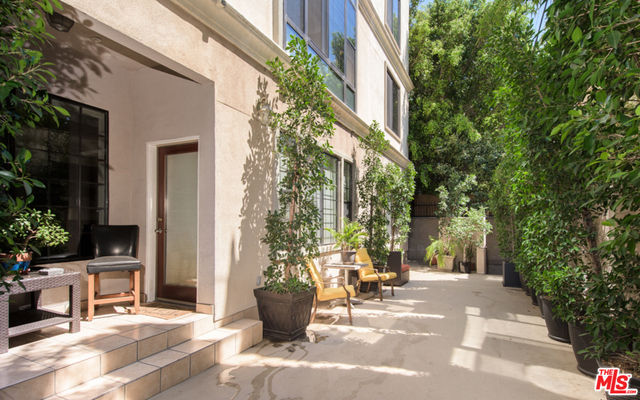 Beautiful and rarely available first floor condo in quiet and luxurious building with just 22 units. This double door entry 2bd, 2.5ba unit has a desirable open floor plan with private rear entertainer's patio. High ceilings, chef's kitchen with granite counter tops, stainless steel Miele appliances, and breakfast bar with seating for four. The large master suite offers a generous walk in closet and spacious bathroom. Oversized 2nd bedroom is replete with en-suite bath. Controlled access building with 2 covered parking spaces. Community rec room with pool table, dry sauna system, and outside BBQ. Sought after location!! Situated just blocks from the most upscale shopping/dining experiences in L.A.