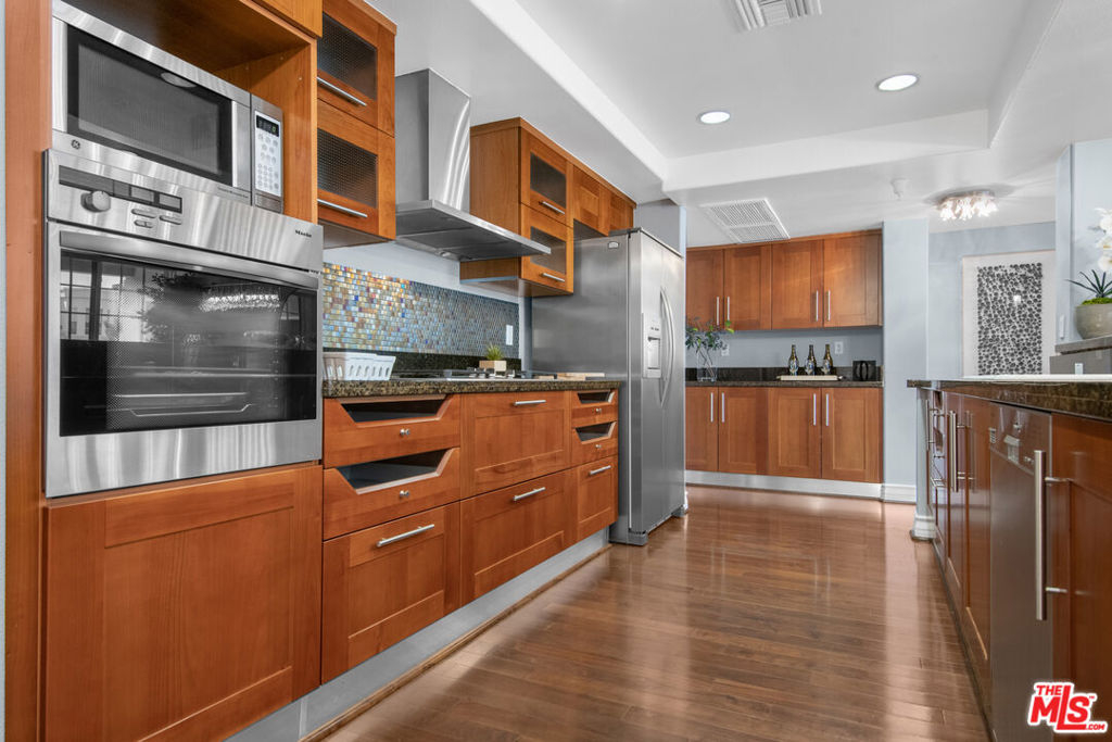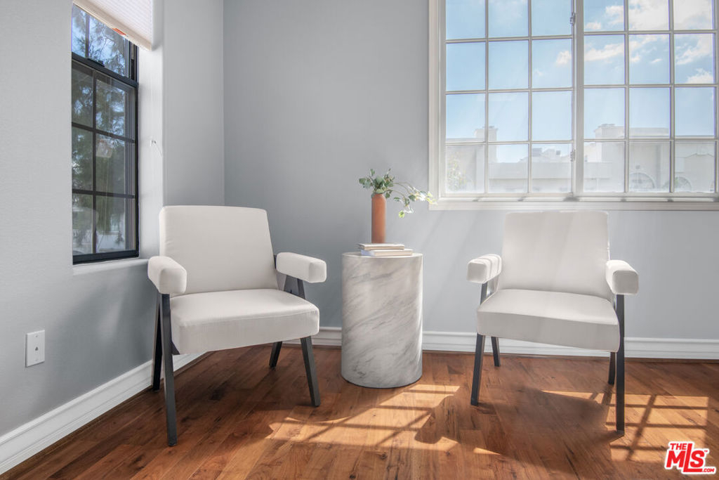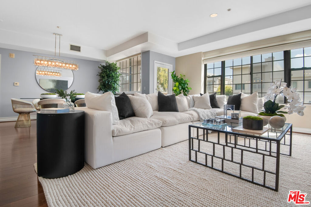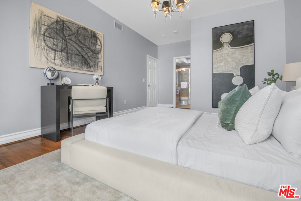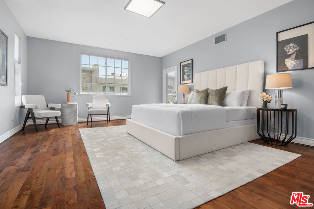 Large open floorplan loft style condo unit. 2 bed, 2.5 bath in highly a desirably Beverly Hills / Weho adjacent luxury building, 107 NORTH SWALL . This third floor street facing unit features an open floor plan with hardwood flooring throughout, high ceilings, gourmet chef's kitchen with Miele stainless steel appliances, and a great bar top with seating for five. The spacious primary suite offers a walk-in closet and beautiful bathroom with double sinks, stand up shower and soaking bath. The 2nd bedroom is just as spacious providing an en-suite bath separate from the living space. This unit is complete with a street facing private patio, in unit washer and dryer along with two subterranean parking spots. The building includes a beautiful lobby, secured 24hr controlled access, ample guest parking, rec room, BBQ area and a low HOA. Walking distance to Robertson, Melrose, West 3rd Street, and the most desirable destinations that Los Angeles and Beverly Hills have to offer.