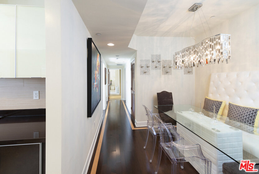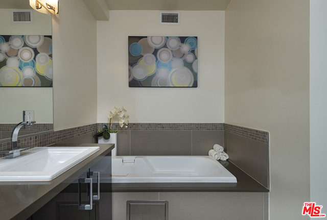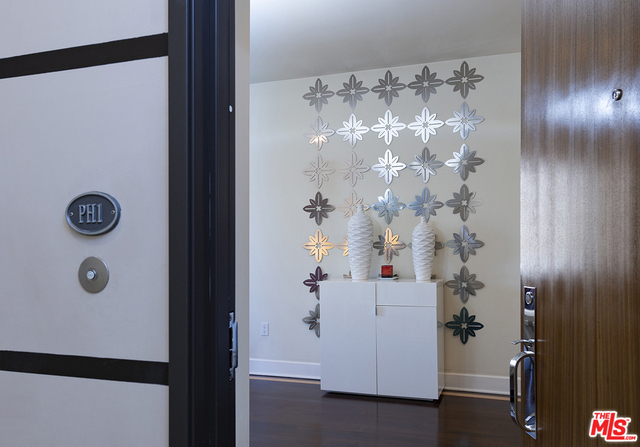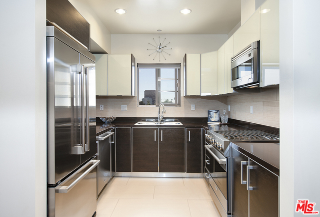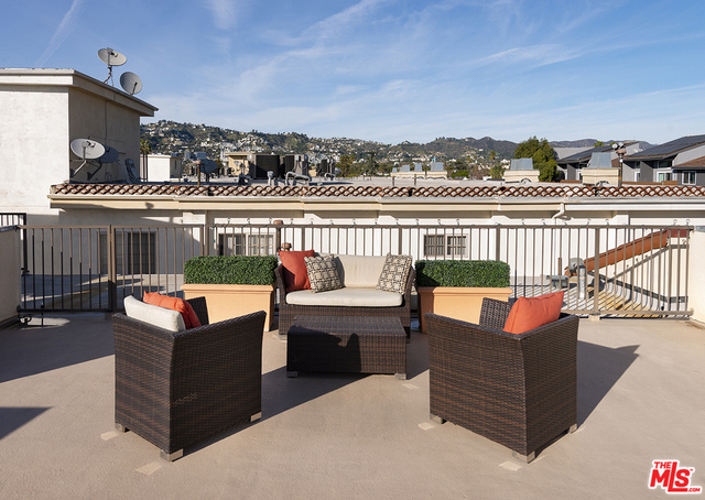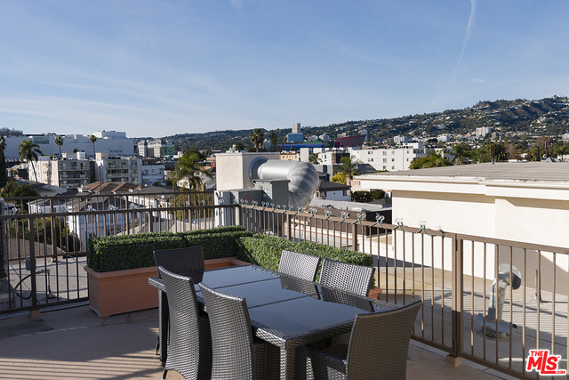 Set amidst too many restaurants and boutiques to name, and only moments from Beverly Hills, The Grove, and The Beverly Center, this chic and contemporary penthouse is situated atop a newer nine-residence building, completed in 2010. Sharing only one common wall, this bright and spacious residence delivers light all day. The living room and dining area are adorned with ebonized wood floors and inlaid maple trim. The kitchen is appointed with Veneto Cucine cabinetry, with the uppers accented with Fantasia glass doors, Viking stainless steel appliances, Caesarstone countertops, and designer tiling. The master suite comes equipped with a custom walk-in closet and fitted organizers. The master bathroom features Italian lacquered cabinetry, dual Kohler vanity, and separate soaking bathtub and shower. The rooftop deck is furnished and offers panoramic views. The garage is gated, and access is controlled.