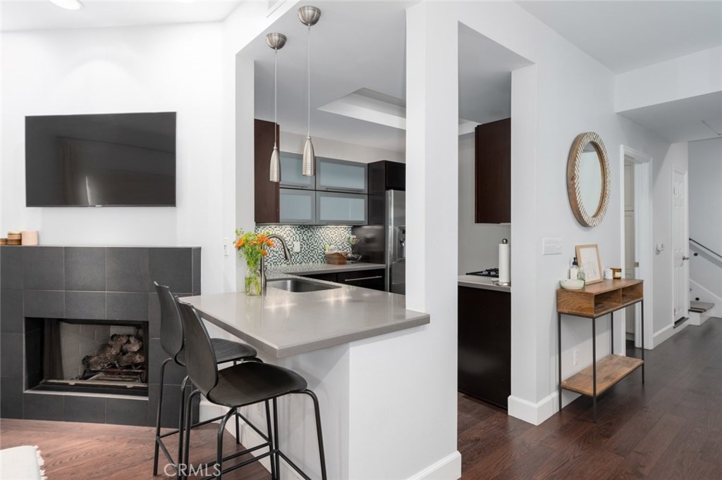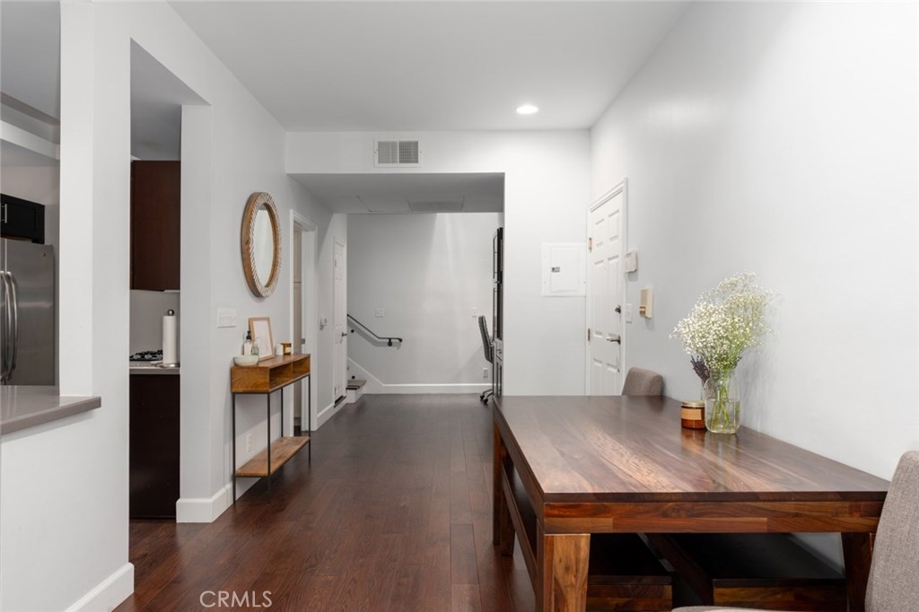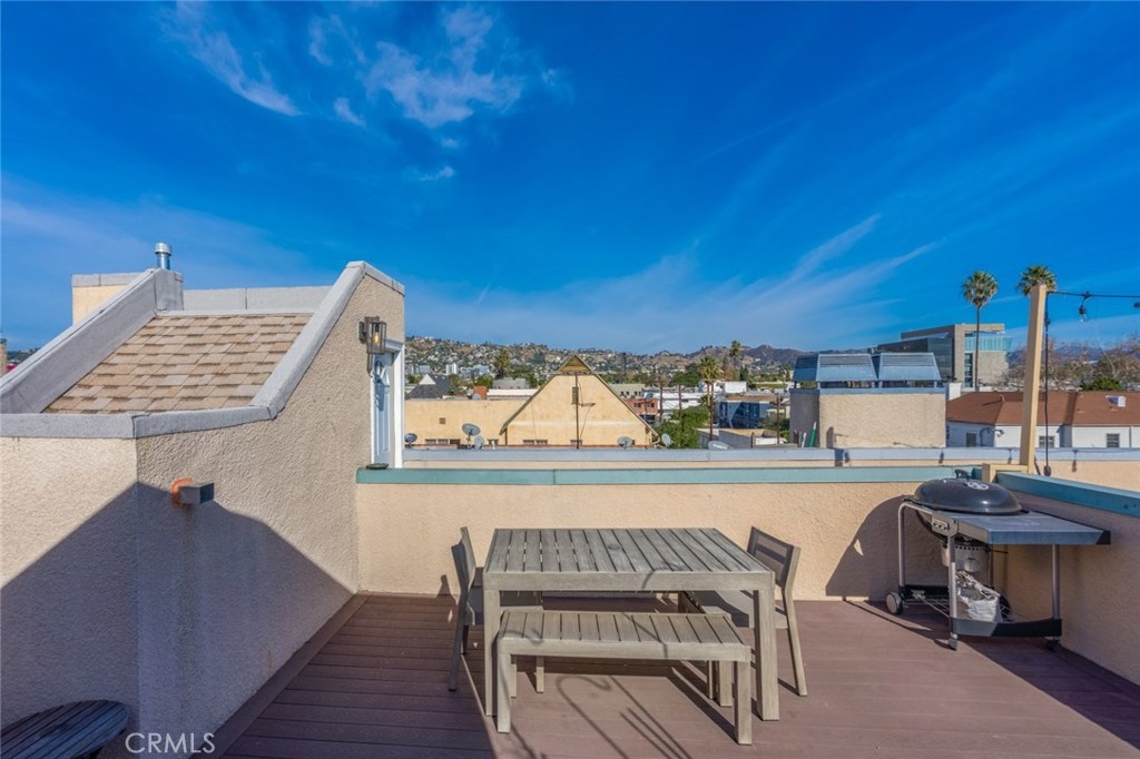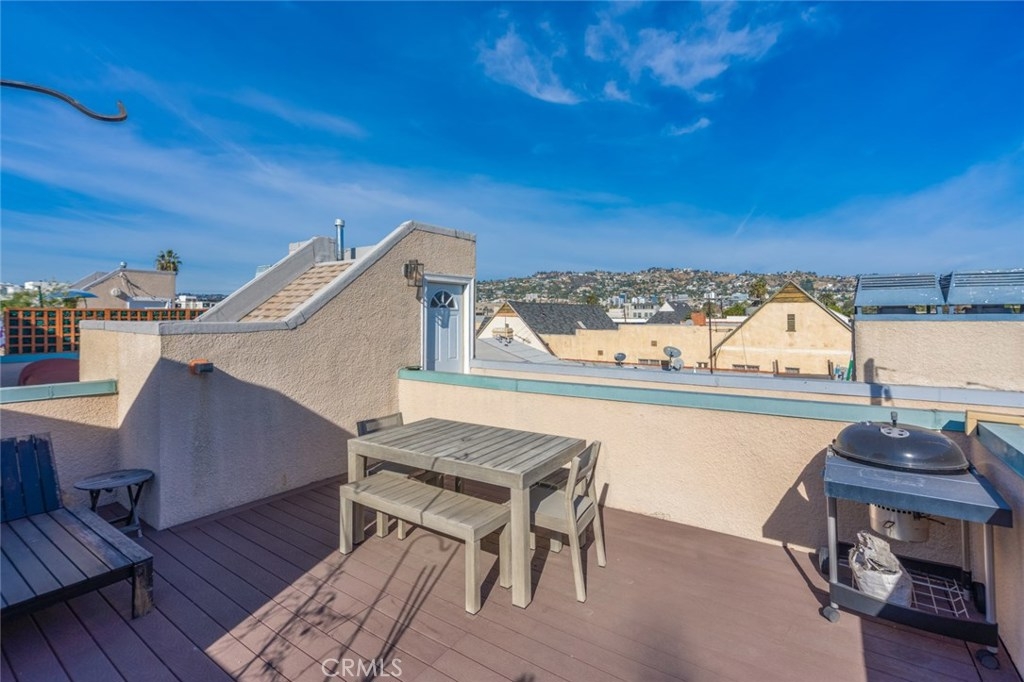Beautifully updated modern townhouse with rooftop deck. This 2 bedroom 2.5 bathroom townhouse was upgraded with no expenses spared. Upgrades include hardwood floors, updated kitchen with stainless steel appliances and Silistone countertops, updated bathrooms, spacious walk in closet, and Trex decking. Enjoy al-fresco dining on your roof top deck with views of the city and Hollywood Hills. Two tandem secured parking spots, four tandem guest secured parking spots, easy street parking, ample storage, low HOA dues, and more. Amazing location; walking distance to the Grove, Beverly Center, and amazing restaurants and shops on Beverly Blvd, 3rd St, La Cienega, and Fairfax.