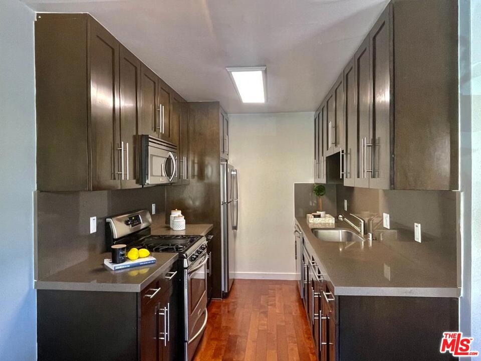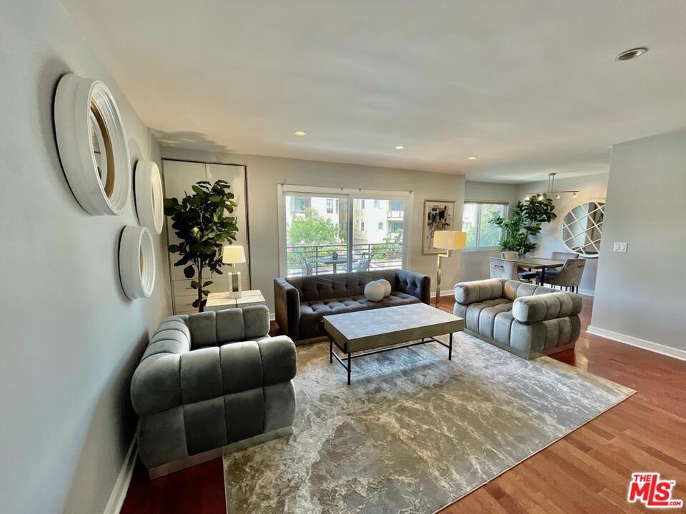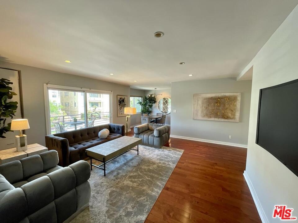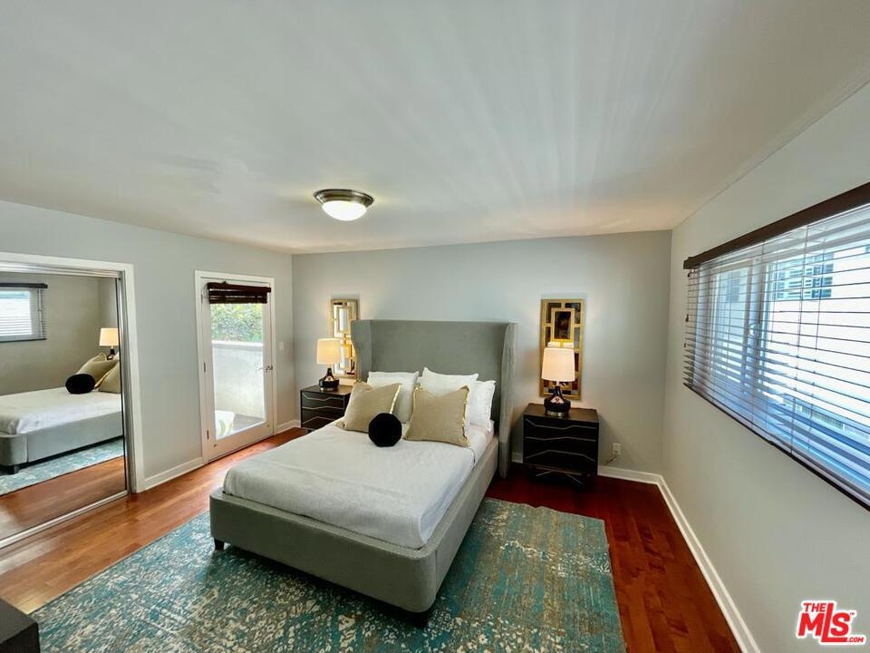 Perfectly located, this one bedroom-one bath front facing condo is only steps away from Beverly Hills. The building offers a neighborhood feel with only 9 units in the complex. This bright corner unit has an open floor plan with a large living area and a balcony overlooking treetops and city lights. The bathroom is equipped with double sinks and a recently renovated shower. The stacked laundry is also tucked away in the bathroom closet. The master bedroom has a sliding door closet, large windows and its own balcony overlooking the courtyard. This unit is packed with charm and the open spaces are perfect nooks to nestle up with a cup of coffee or a favorite book. Low HOA. Perfect consideration instead of rent.