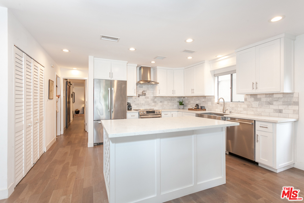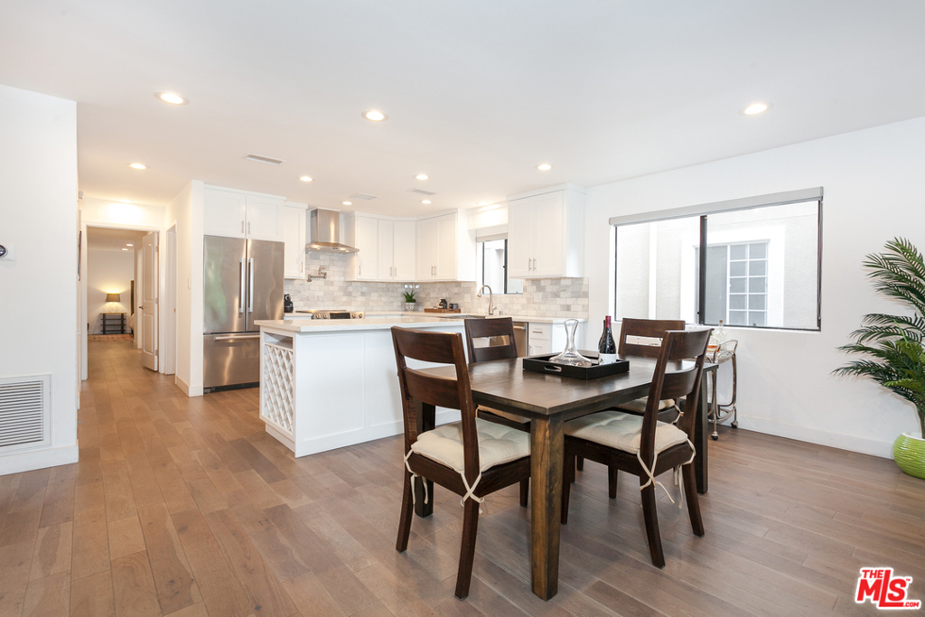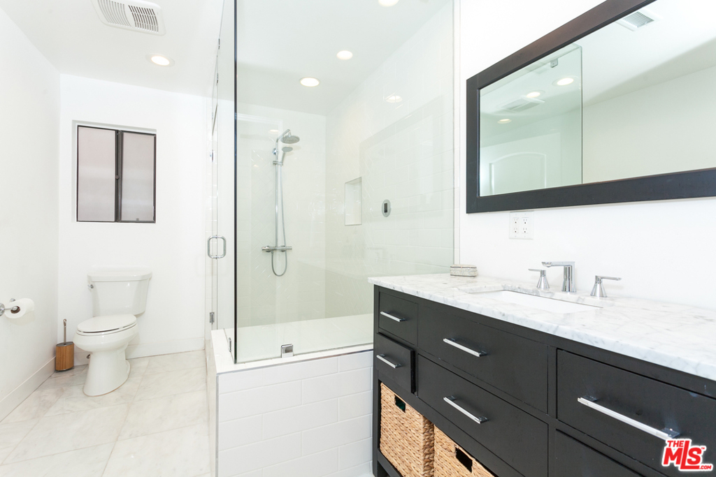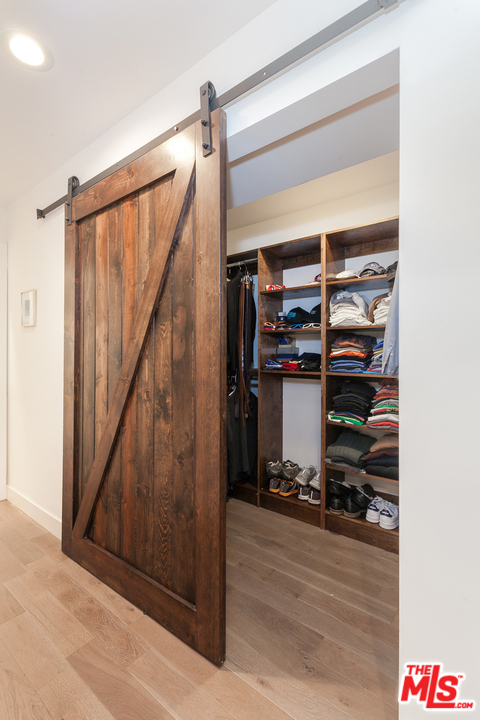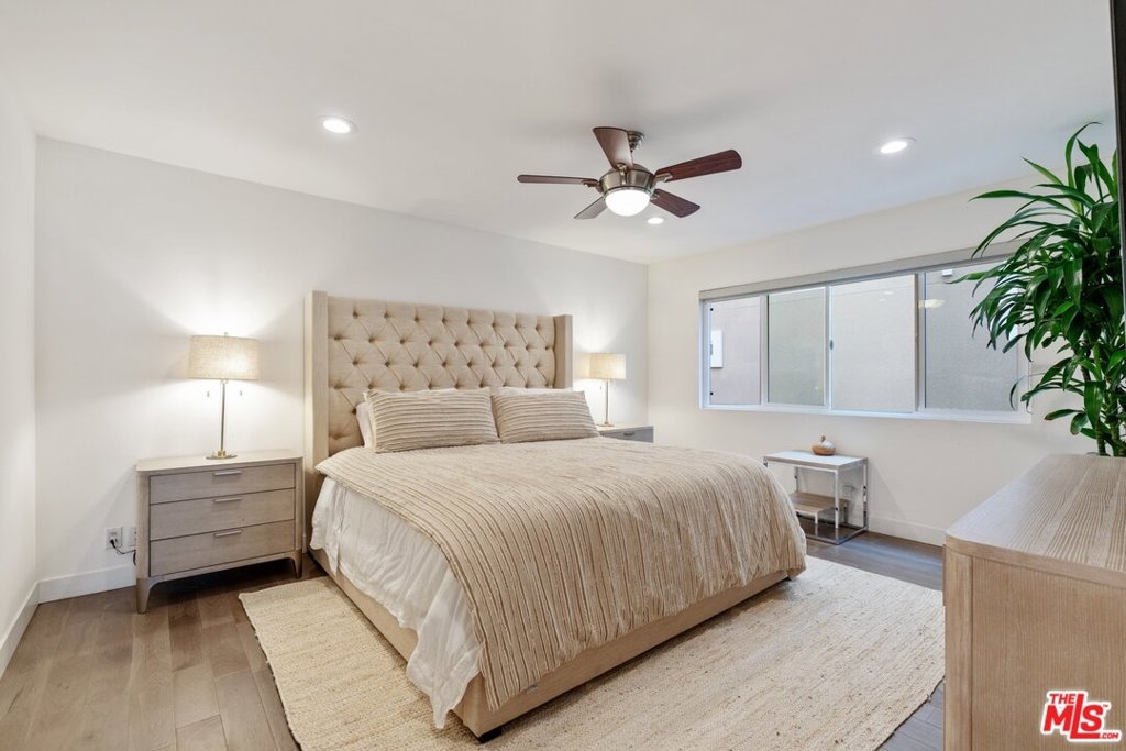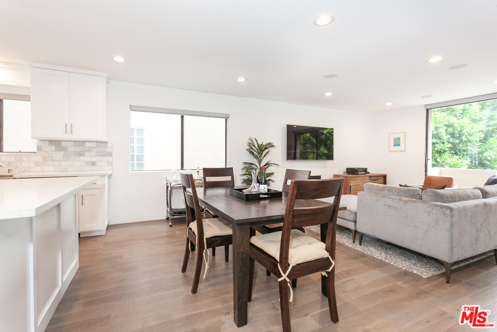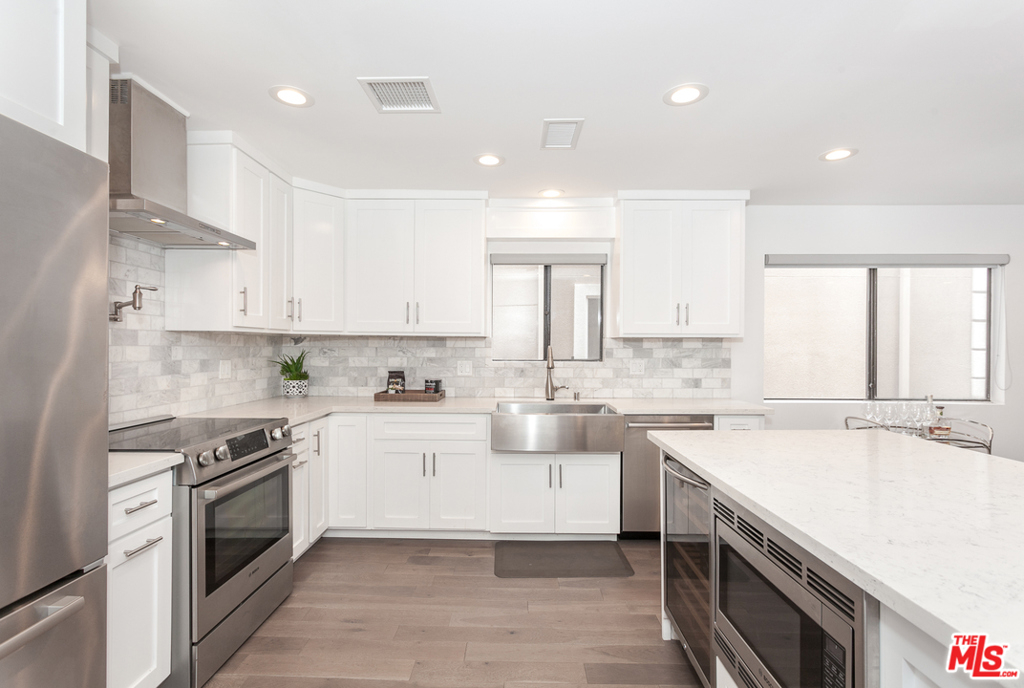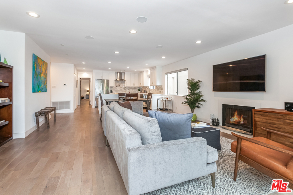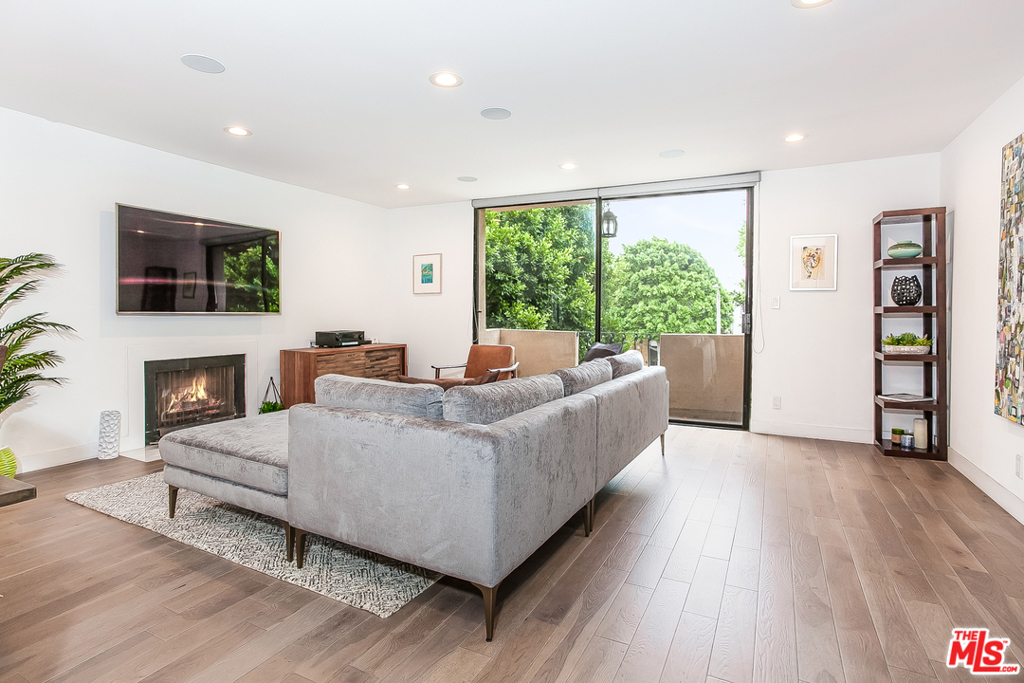 Situated in an intimate boutique 10-unit building is this beautifully remodeled open floor plan 2 bed, 2 bath corner residence featuring a large custom kitchen with high-end appliances, a wine cooler, and a center island, all dressed in luxury finishes. The kitchen flows seamlessly into the main living space which is flooded with natural light and opens up to a south facing balcony with tree top views making it ideal for entertaining. The master suite includes a custom fully built-out walk-in closet and a luxurious bathroom with a large steam shower. The 2nd bedroom is perfect for a home office or space to welcome overnight guests. Additional features include hardwood floors, recessed LED lighting, built-in surround sound system, in-unit washer/dryer, nest controlled central air/heat, parking for 2 cars + ample storage in a secured garage. Ideally located just steps from trendy Robertson, 3rd street, and some of the best dining and shopping Beverly Hills / West Hollywood have to offer.