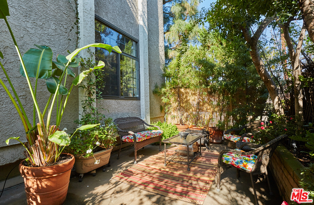 RARE CONDO w/ HUGE PRIVATE TERRACE! Only unit in the building that has this unique patio perfect for kids, entertaining & relaxation in your very own piece of paradise. New York LOFT GARDEN right in the middle of the city!!! Amazing Beverly Hills Adjacent location minutes to everything! As soon as you walk into the foyer you are greeted by a bright great room w/ walls of glass & patio doors opening to your garden. Very spacious living & dining room, excellent for gatherings & al fresco dining. Custom kitchen cabinets w/built-ins & granite counter tops. 2 well appointed bedrooms, master bath completely remodeled w/double sink & designer tub, walk-in & custom closets throughout. Unit features central heat & air, built-in bar, hardwood floors, washer & dryer INSIDE UNIT. Building offers pool/spa, rec room, extra STORAGE room, 2 SIDE-by-SIDE parking spots. Minutes to the mall, restaurants, shopping, night life, parks, freeways, Beverly Hills, Hollywood & Downtown LA.