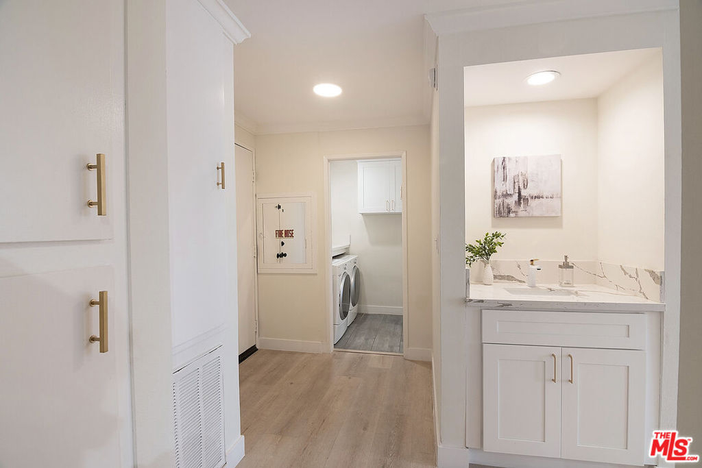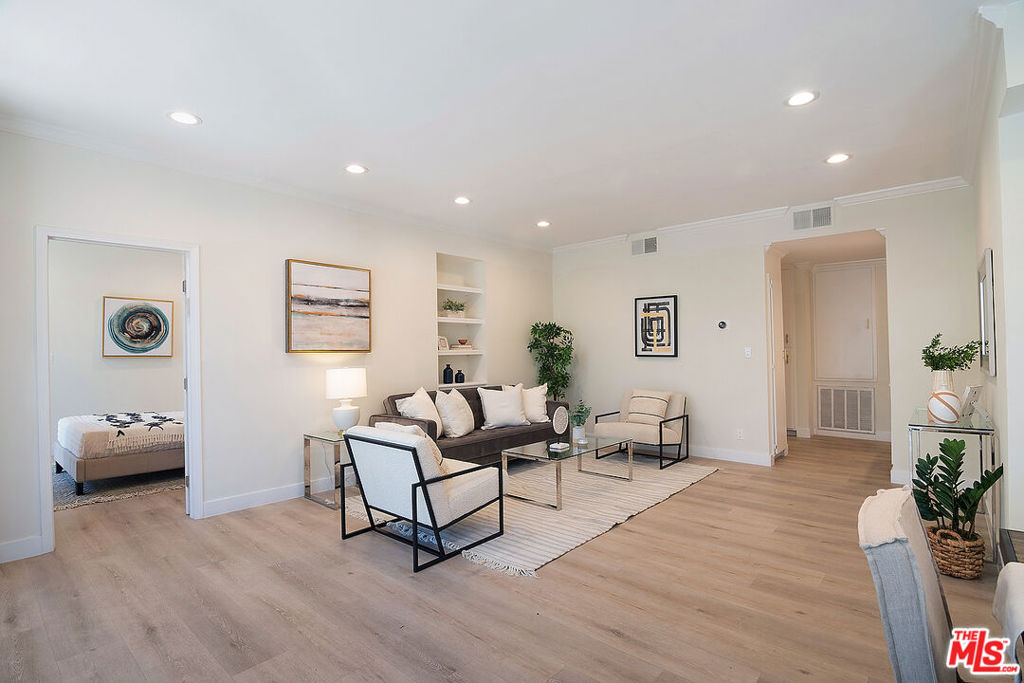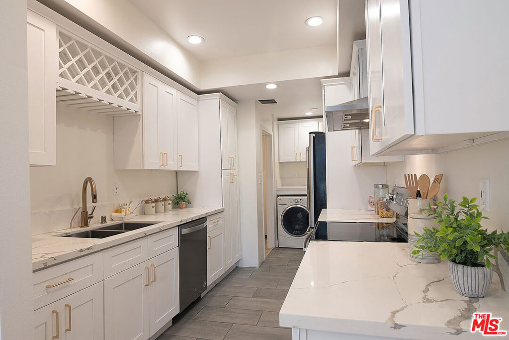 Amazing Beverly Hills Adjacent location minutes to everything! This bright light condo features formal entry, wet bar, recessed lighting, high ceilings, and great living room w/ walls of glass patio doors opening to your own balcony. The entire condo was fully remodeled designed with modern white and gold finishes. The kitchen has stainless steel appliances. The unit has a nest thermostat for central heat & air, lots of closets, side by side washer & dryer INSIDE UNIT. The building offers pool/spa, rec room, extra private STORAGE room, 2 parking spots in secured underground parking. Minutes to the mall, restaurants, shopping, nightlife, parks, freeways, Beverly Hills, Hollywood & Downtown LA. Don't miss out and move right in to this move-in ready beautiful condo!