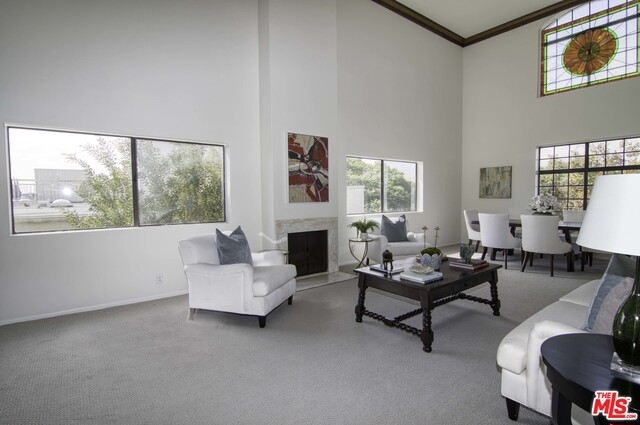 Top floor 2-level corner unit penthouse with a huge private upstairs patio located in sought-after Beverly Hills adjacent neighbor. 2 spacious bedrooms, 2.5 bathrooms, perfect for a live/work space, pied-a-terrè, or long term family investment. Grand room boasts soaring 20 ft ceilings, crown molding, recessed lighting, wet bar, and a fireplace perfect for entertaining family and friends. Tons of built-in storage in the eat-inkitchen with balcony overlooking a beautiful tree lined street. Well sized master suite features ample closet space and en suite bathroom with shower and separate bathtub. Large in unit laundry room with storage. Secure building with gated parking and 2 side by side spaces. Building amenities include a pool, spa, party room, and private storage closets for residence. One block away from thriving Robertson Blvd. and only minutes to world famous Beverly Hills shopping and dining, renowned medical facilities.