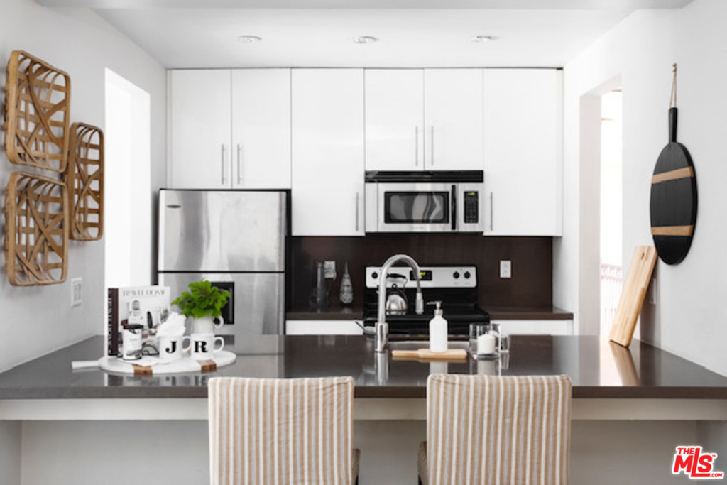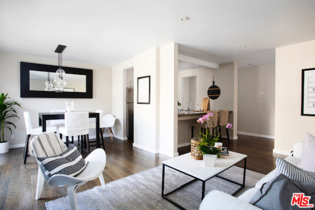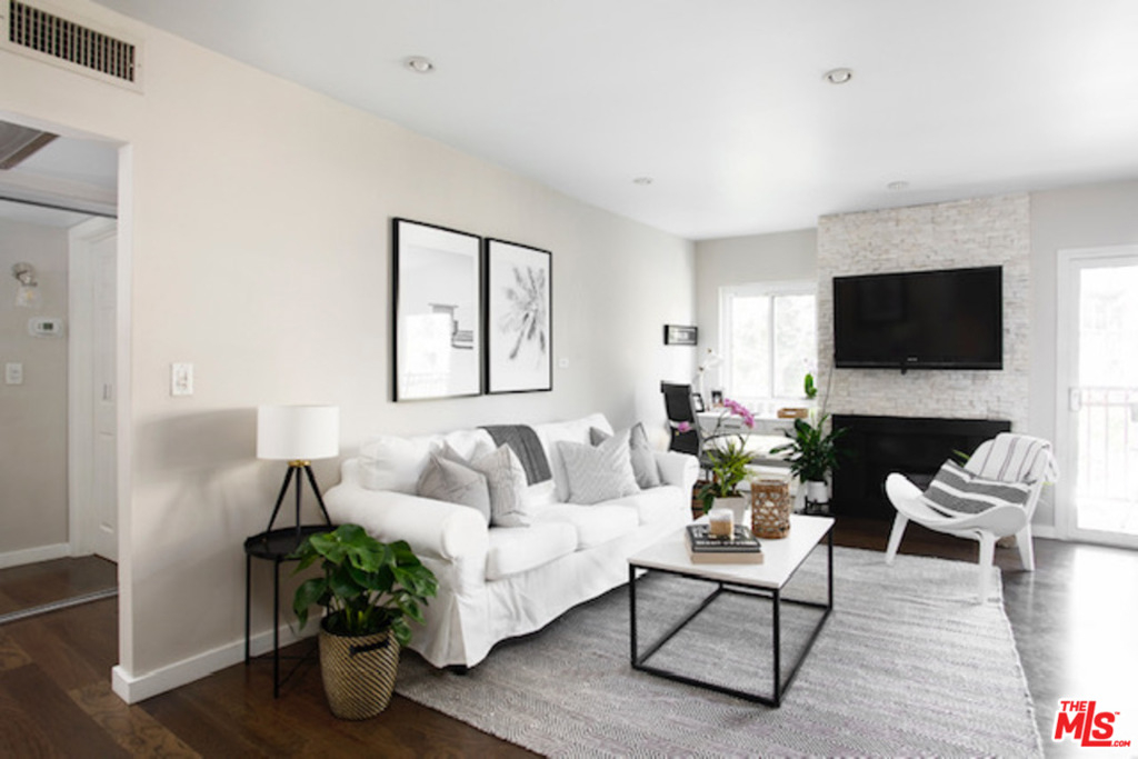 Style and sophistication abound inside this beautifully updated, corner unit just steps from Robertson Blvd. Upon entering, you'll find an oversized living room with hickory flooring, a gas fireplace, & light pouring in from the Southwest exposure. The open concept dining area is right off the kitchen which features a breakfast bar, caesarstone countertops, & stainless appliances. The spacious bedroom dazzles with its walk-in closet + additional storage in the hall. To top it all off, you have in-unit laundry and an oversized balcony to take in those CA sunsets from the largest one bedroom floor plan in the building. The community doesn't disappoint either! You'll enjoy the sparkling community pool, BBQ area, fitness center, & low HOA dues. All within strolling distance to Bristol Farms, Blue Bottle, The Ivy, Cedars, & more! Welcome home.
