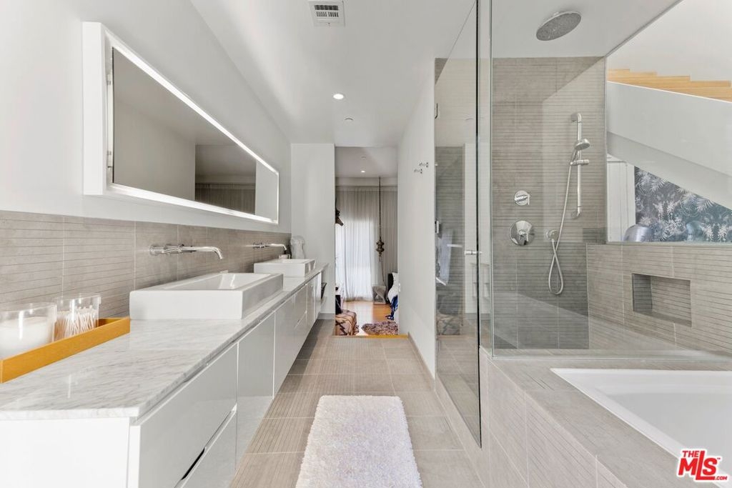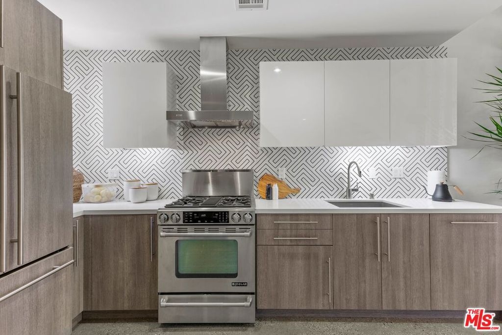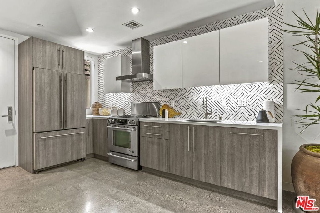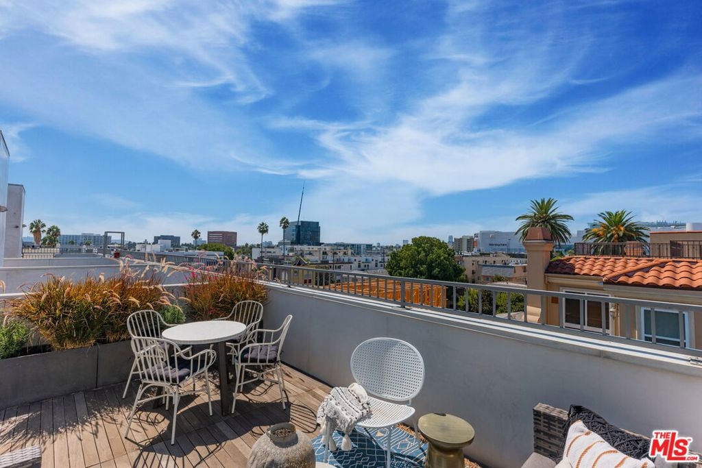 Pristine, move-in ready Modern architectural townhome - a rare and coveted find in a most desirable urban location in the heart of Beverly Grove! Impeccably custom designed, this tri-level loft-style townhouse features a private roof top deck with dining and lounge areas, built-in outdoor kitchen + fantastic jetliner, city and Hollywood Hills views. Designed by award-winning renowned architects Pugh + Scarpa (known for producing work of exceptional architecture that expresses the highest aesthetic, environmental and social ideals), this townhome is fully appointed with a top grade kitchen offering flushed oak and white lacquered cabinetry, white Caesarstone counter tops, Bosch ultra quiet dishwasher, and Jenn Air stove. Main living space boasts a soaring 20-foot ceiling! Other highlights include: dual pane windows, high end Grohe bath fittings, polished terrazzo aggregate flooring on the first level & solid golden oak plank flooring on the stairs & upper levels. Eco-friendly elements include LED lighting, low-flush Kohler toilets, tankless water heater, and Nest thermostat. Only 12 units in complex each with direct access from open air exquisitely maintained & welcoming courtyard.