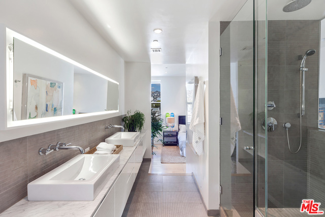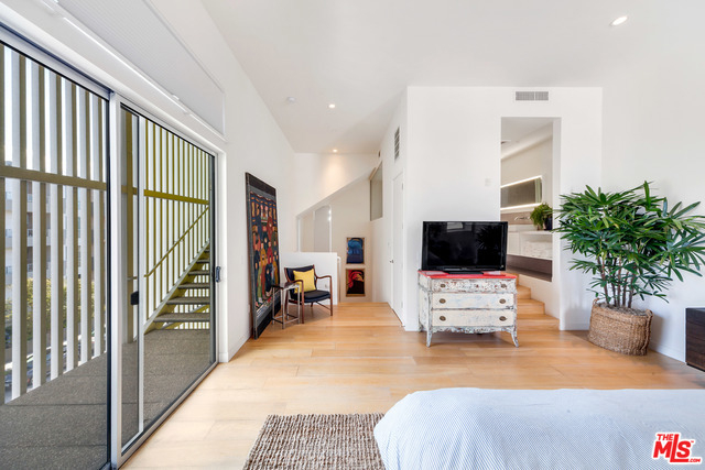 Modern loft-Style space with an amazing private 536 square foot roof deck with incredible views. This genre of property is rare and hard to find in the West Hollywood/Grove neighborhoods. Very close to everything La has to offer including restaurants, shopping, and nightlife. Secure gated garage with two parking spots 12-foot to 20-foot high ceilings, custom-painted concrete floors with 7-inch oak plank floors on upper levels, wired for speakers in every room, fully appointed Jenn-Air kitchen with oak and white-lacquered cabinetry, white marble and rain-showers in both bathrooms (one with tub), Grohe bath fittings, Stainless appliances. The roof deck has hookups for water and gas for a barbecue and views all over LA. This needs to be seen. Its fantastic.