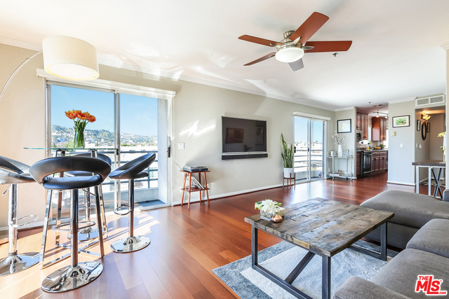VIEWS VIEWS VIEWS! Amazing PENTHOUSE condo with 6 balconies. Views of the hills from Griffith Observatory and the Hollywood Sign all the way to Beverly Hills from every room. Floor to ceiling windows throughout. Light and Bright spacious floor plan. Half of an entire floor almost 1600sqft. Only 1 shared wall and no one above you. Enjoy breathtaking sunsets from the west facing living room. 91/100 Walkscore, conveniently located 1 block to Beverly Center and right off 3rd street with many great restaurants and shops. In unit laundry (side by side full size), central AC, hardwood floors throughout, gas fireplace. 3 off street parking spaces.
