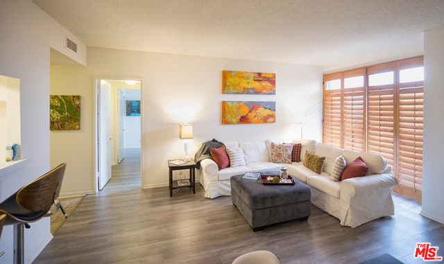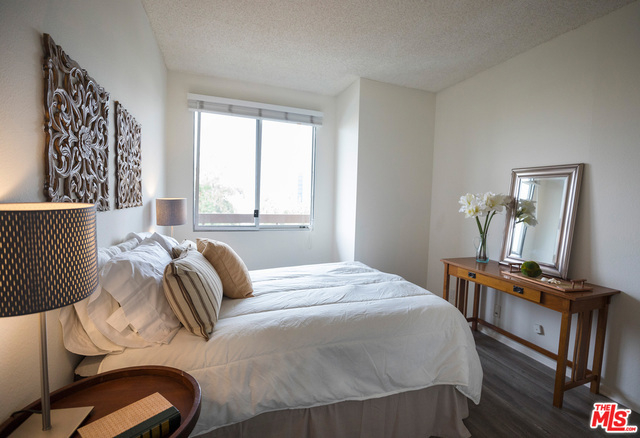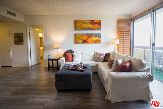 Great starter condo that's ready to move into but with lots of room to update and make it your own. This 2 bedroom - 2bath unit has a large balcony off the living room facing the sunsets in the west and city views. Kitchen has breakfast bar and pass thru to living area. Spacious master bedroom with lots of closet space. The 2nd bedroom also has good closet and across the hall from full bath. Unit has new ceramic plank floors, central heat & air, 2 car tandem parking and community laundry on the unit floor, plus complex has pool, tennis court and paddle tennis. Great location across the street from Beverly Center, Cedar Sinai Hospital and centrally located between West Hollywood & Beverly Hills.