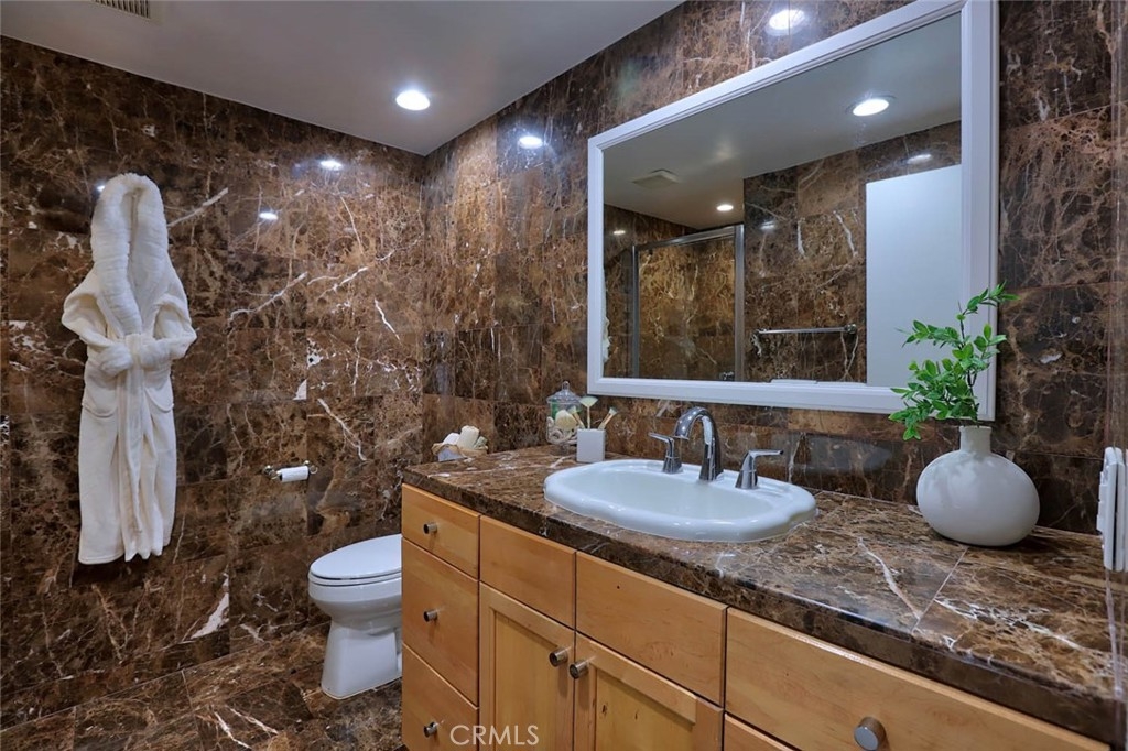 LUXURY CONDO IN PRIME LOCATION! This unit recently remodeled features a beautiful kitchen with Italian cabinets, granite counters, new stainless steel appliances and recessed lighting. The open living room offers a large, covered private balcony that can also be accessed from the generous master suite.There is ample closet space. Additional features include beautifully new floors, marble floors and walls in the two bathrooms, gated tandem parking for two cars. Building amenities include pool, spa, barbeque and lounge area, exercise room, tennis court, on-site manager and security. There is community laundry on each floor of the building. Don't miss this phenomenal location, next to the Beverly Center, Beverly Connection, Cedars Sinai hospital and Trader Joe's.