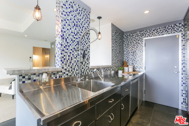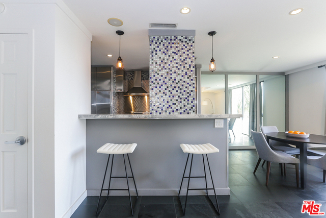 Beautifully remodeled 1 Bd condo in centrally located full service high rise building. Modern designer finishes throughout including Slate floors in living room, stainless steel appliances, and counter tops in the kitchen with mosaic tile back splash. Walls removed on kitchen wall to provide custom breakfast bar and open feel to the living room. Rich wood floors in bedroom with great closet space throughout. Master bathroom has granite counters with separate bath tub and shower adorned with subway tiles. A balcony with westerly green belt and Sunset views to enjoy coffee in the morning and cocktails at night. Located next door to Four Seasons Hotel, close proximity to Beverly Hills , West Hollywood, world class Restaurants, and Cedars Sinai medical center. This luxury building offers 24 hour security, concierge, pool, gym, conference room and tennis courts.