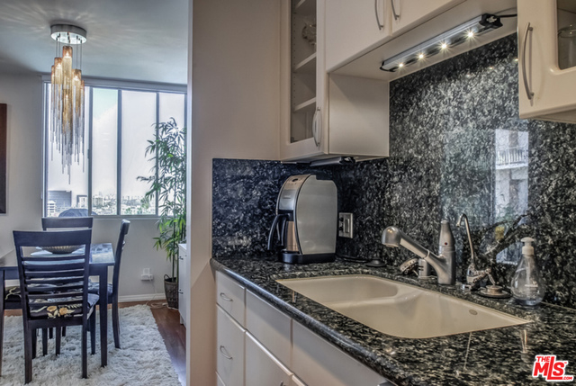 "100 Doheny" Deserve the finest. Upper unit with sunrise views to Downtown and Hollywood Hills. Recently remodeled 1 bedroom, 1 ½ bath unit with hardwood floors. Dining room converted to private office. 24-hour door attendant, heated pool and spa, gym, tennis court and walking track. Located in the heart of Doheny, Four Seasons Hotel, Cedars and West Hollywood. Easy to show.
