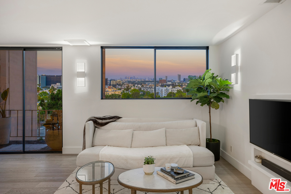 Quite possibly one of the most stylish and contemporary condominiums in the prestigious, Full-Service 100 S. Doheny building, this 7th floor luxury residence delivers the ultimate high-rise living experience. Exquisitely remodeled 1 bedroom, 2 bathroom home displays ample natural light and directs eastward, with spectacular mountain and city views all the way to Downtown LA. Updated finishes include wide plank French oak solid hardwood flooring, new high-quality lighting fixtures, new interior doors, custom closets and bookshelf. Open concept kitchen boasts quartz countertops, a large waterfall island, and modern KitchenAid appliance suite. The full service building offers 24-hour concierge and security services, pool, spa, tennis courts, fitness center, and a dog run. Location central to Four Seasons Hotel at Beverly Hills, Rodeo Drive, Robertson Boulevard Shopping District, Cedars Sinai Medical Center, retail, dining and services.