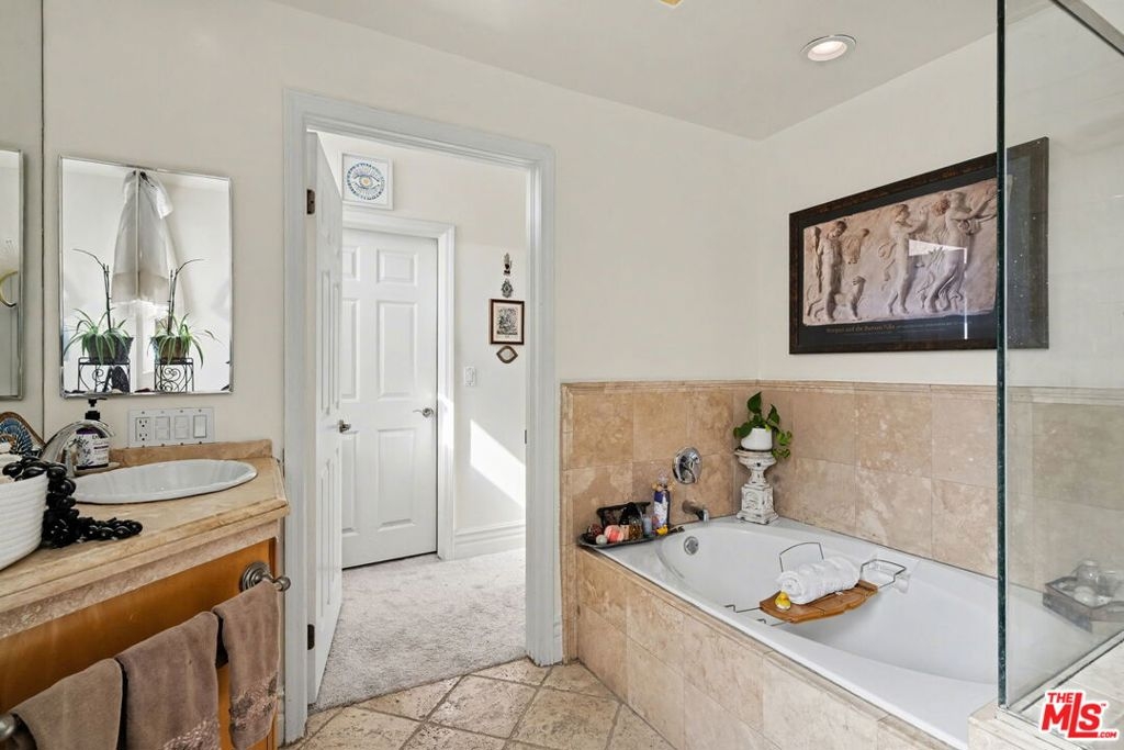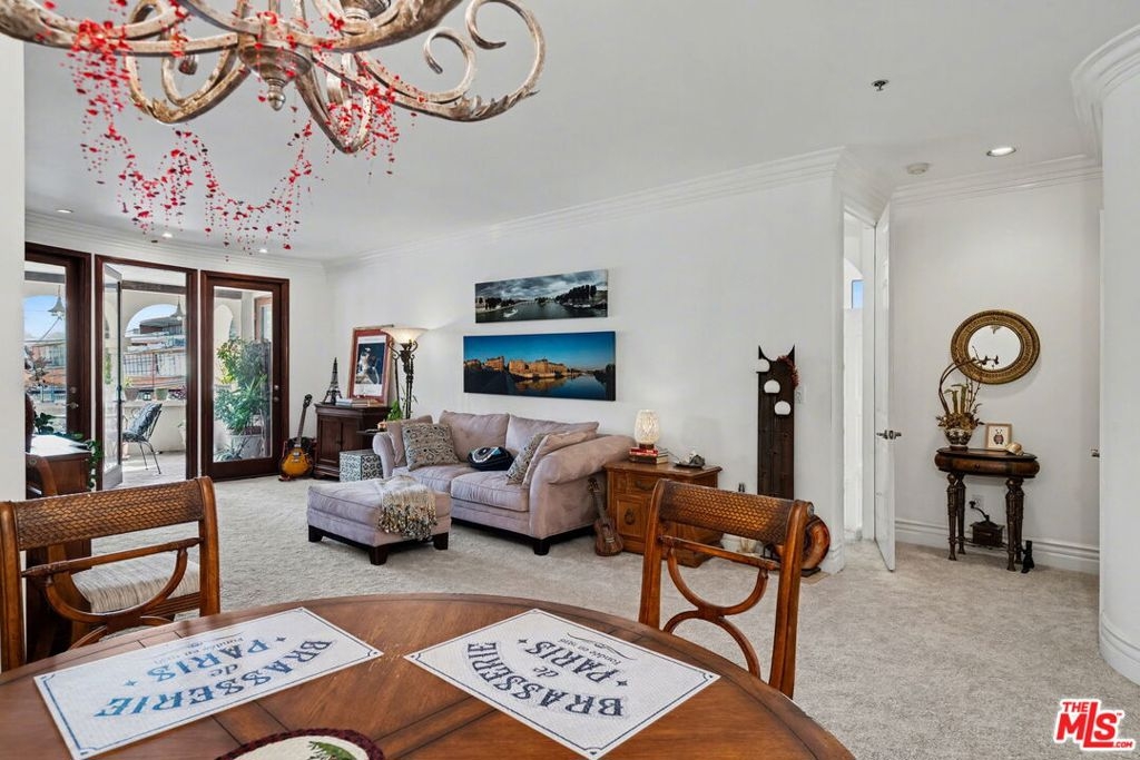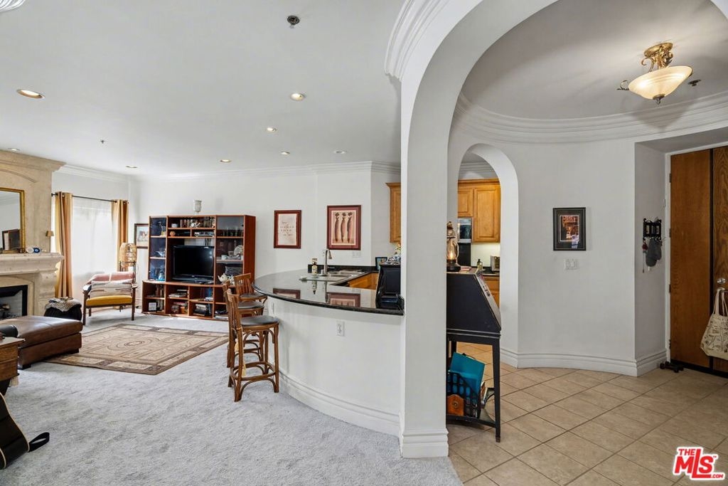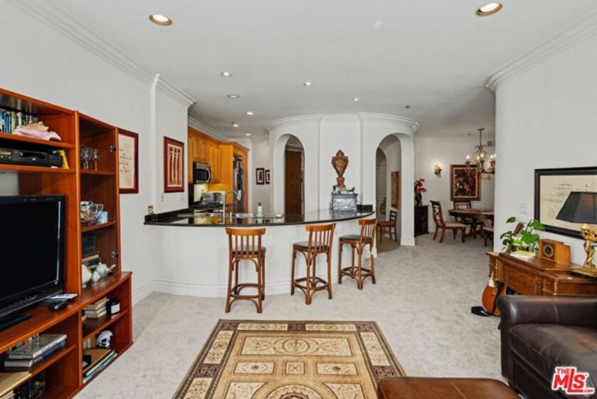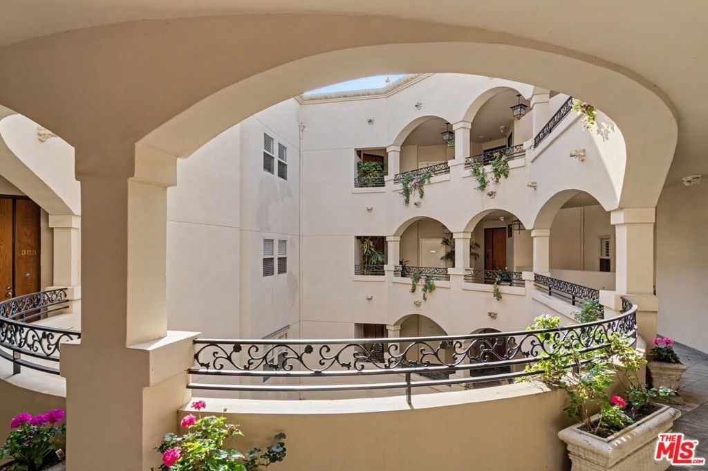 Spectacular 2 bed/2 bath + family room and stunning large covered balcony corner unit in highly desired upscale Mediterranean courtyard complex in prime Century City Adjacent location. Elegant rounded wall formal entry opens to the spacious floor plan with large living room and dining room that includes a beautiful wall of wood framed floor to ceiling windows and French doors leading to large enclosed tiled patio with arches overlooking Century City views, ideally designed for outdoor relaxing and dining as an outdoor extension of the condo. Light and bright family room with fireplace opens to entertainer's kitchen with large breakfast bar with granite countertops, stainless steel appliances with newer range/oven, microwave and dishwasher and pantry cabinet. Beautiful primary suite with French door to covered patio, walk-in custom-built primary closet and luxurious primary bathroom with separate bath and shower and 2 sinks with sconce lighting and large window bringing in natural light. 2nd bedroom with window overlooking outside balcony. Updated 3/4 bath with newer designer marble bowl sink and tiled shower. Inside laundry area, recessed lighting, pets ok, rooftop patio area, 2 car head-in parking spaces, guest parking, elegant courtyard with fountain. Ideally located close to Rancho Park Golf, Park and Recreation Center, Westfield Century City Mall, Beverly Hills and ULCA. Westwood Charter School.