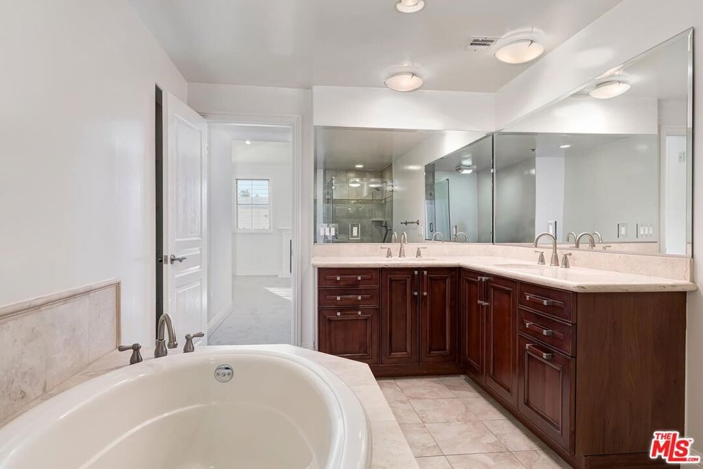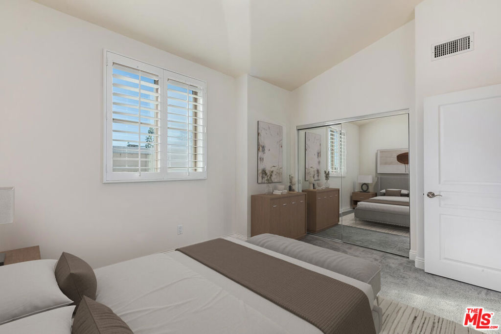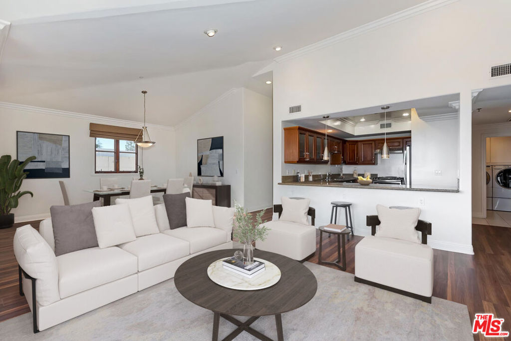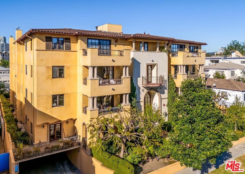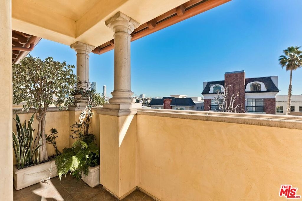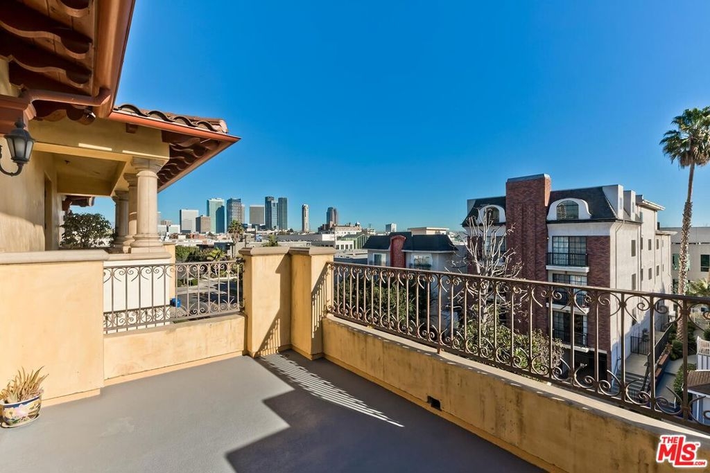 This spacious and bright 3 bedroom move-in ready penthouse unit offers South facing panoramic views, sunny terraces, vaulted ceilings, dedicated laundry room with custom cabinetry, en-suite primary bedroom, and 3.5 baths. A quiet, well maintained building, there are 3 assigned covered parking spaces and a private walk-in storage room. Located north of Santa Monica Blvd. and in a very sought after school district. Quiet street with easy parking. This one checks all the boxes!