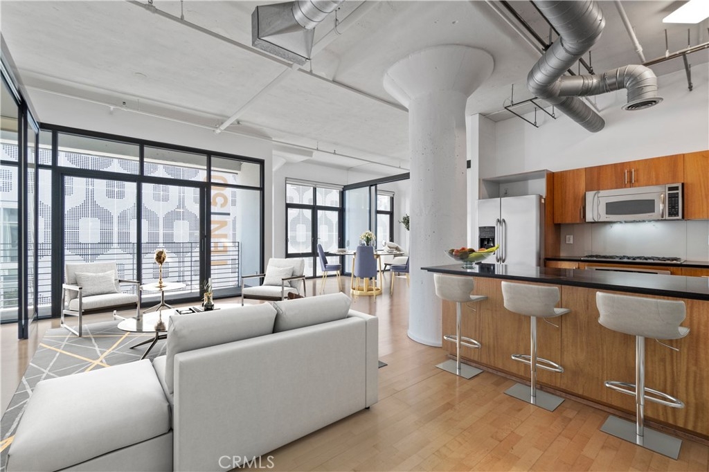 Welcome to your new home at The Grand Lofts. NEW PRICE AND LUXURY VINYL FLOORS. This architecturally stylish Grand Lofts gives you the perfect work/life balance. This contemporary open and naturally lit loft boasts high ceilings, expansive oversized windows, open floor plan, modern kitchen with stainless steel appliances, walk-in closet, private balcony, in-unit washer/ dryer combo, hardwood floors, room dividers and more… Grand Loft residents have full access to all the amenities in the modern resort- like adjacent building AVEN with 2 side by side (yes, not tandem) parking spots. The other amazing amenities include a sparkling 3 lane lap pool with cabanas and loungers, hot tub, beach volleyball court, basketball court, fitness center, business center, many BBQ areas and a pet care stations. Walking distance to LA Live, Staples Center, FIDM, Target, metro stations, supermarkets and easy access to the 110 & 10 FWY. Short commute to USC, Little Tokyo, Chinatown, Koreatown and Arts District.