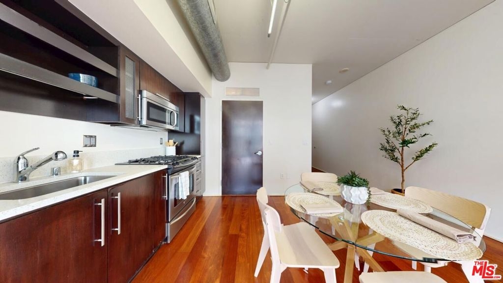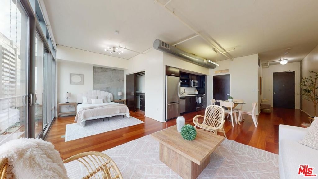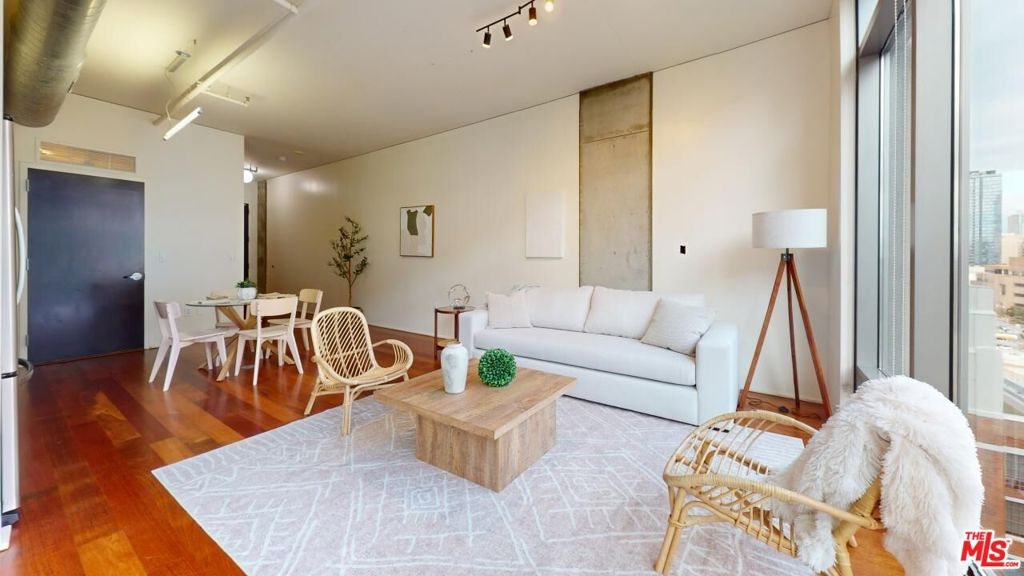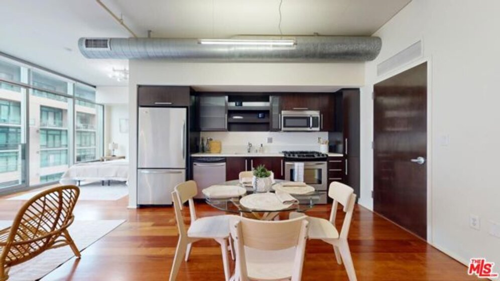FANTASTIC OPPORTUNITY! This unit is a beautiful East facing "soft loft" condo in Luma, DTLA's premier living... with great views, from floor-to-ceiling windows & sliding door "Juliette"! HARDWOOD FLOORS WERE JUST SANDED, STAINED, AND FINISHED; KITCHEN & BATHROOM CABINETS WERE JUST RESURFACED; WALLS WERE JUST REPAINTED; AND NEW CEILING LIGHT FIXTURES INSTALLED! The unit features stainless steel appliances, and washer & dryer inside. LUMA is a Gold LEED-certified Green building (benefits incl. low electricity bills). The building is FHA/VA approved, as well as for conventional financing. Property has an ASSUMABLE VA LOAN @ APPROX. $445,000 BALANCE @ 3.750% INTEREST. Amenities incl. 24/7 doorman & security, gym, pool/spa/sun-deck on a 1/2 acre outdoor community terrace with BBQ, fireplace, and lounge chairs. Neighborhood amenities incl. popular Prank Bar on the ground floor of the building and mere steps to The Moxy, Level 8, Javier's, Mastro's, Starbucks, Orange Theory, South Park Pharmacy & Grocery, Crypto.com Arena, LA Live, Regal Cinemas, Ralph's, Whole Foods, and an abundant restaurant and mixology bar scene. This is a GREAT time to live & invest in Downtown LA: U.S. SUPREME COURT HAS RULED THAT CITIES CAN BAN HOMELESS ENCAMPMENTS & BILLIONS of dollars are going into DTLA development projects in preparation for the 2026 FIFA World Cup and 2028 Summer Olympics, incl. newly paved streets everywhere, plus exciting new construction in the neighborhood. AGENTS SEE PRIVATE & SHOWING REMARKS!