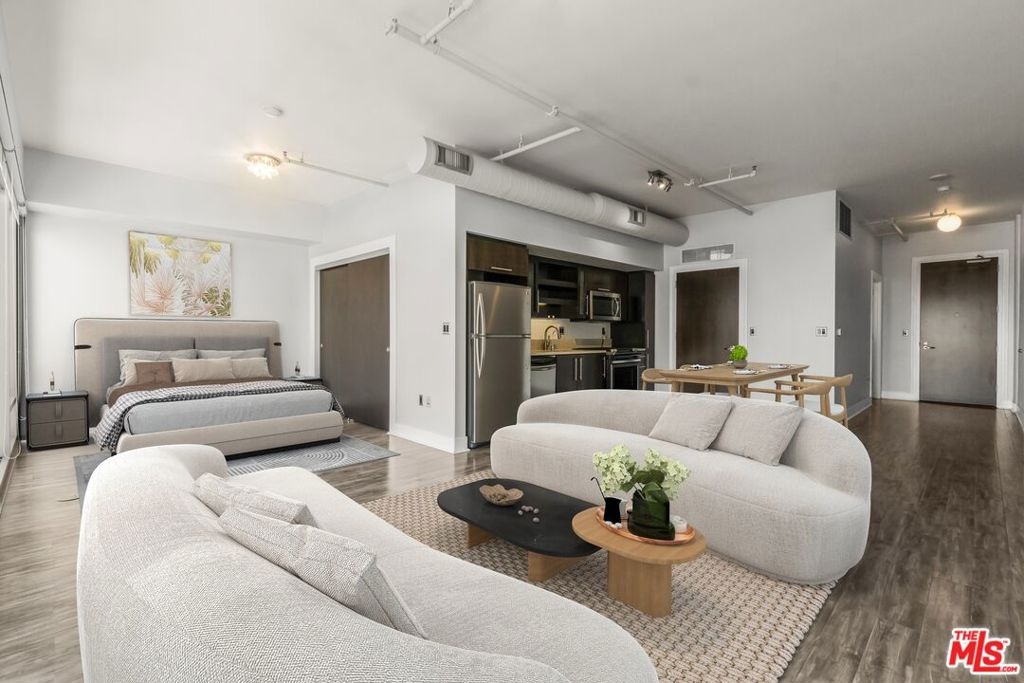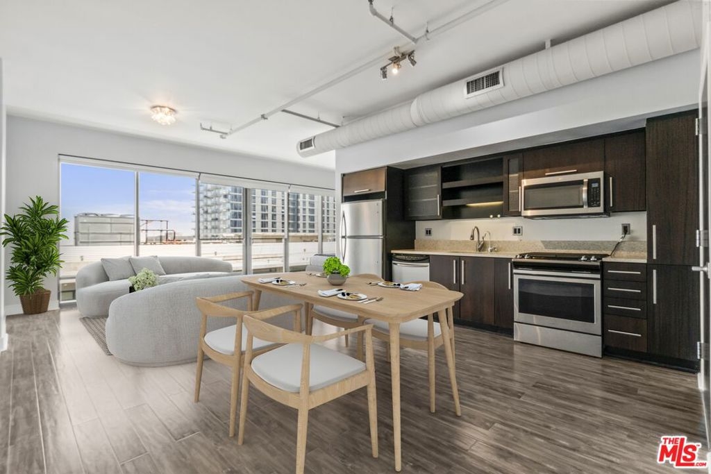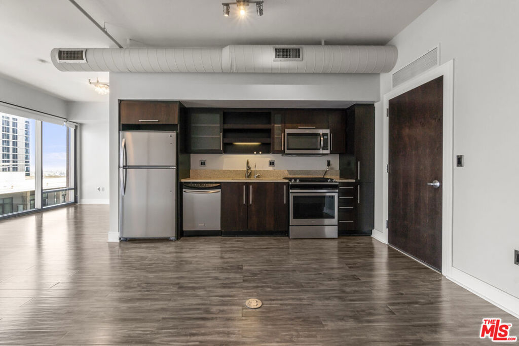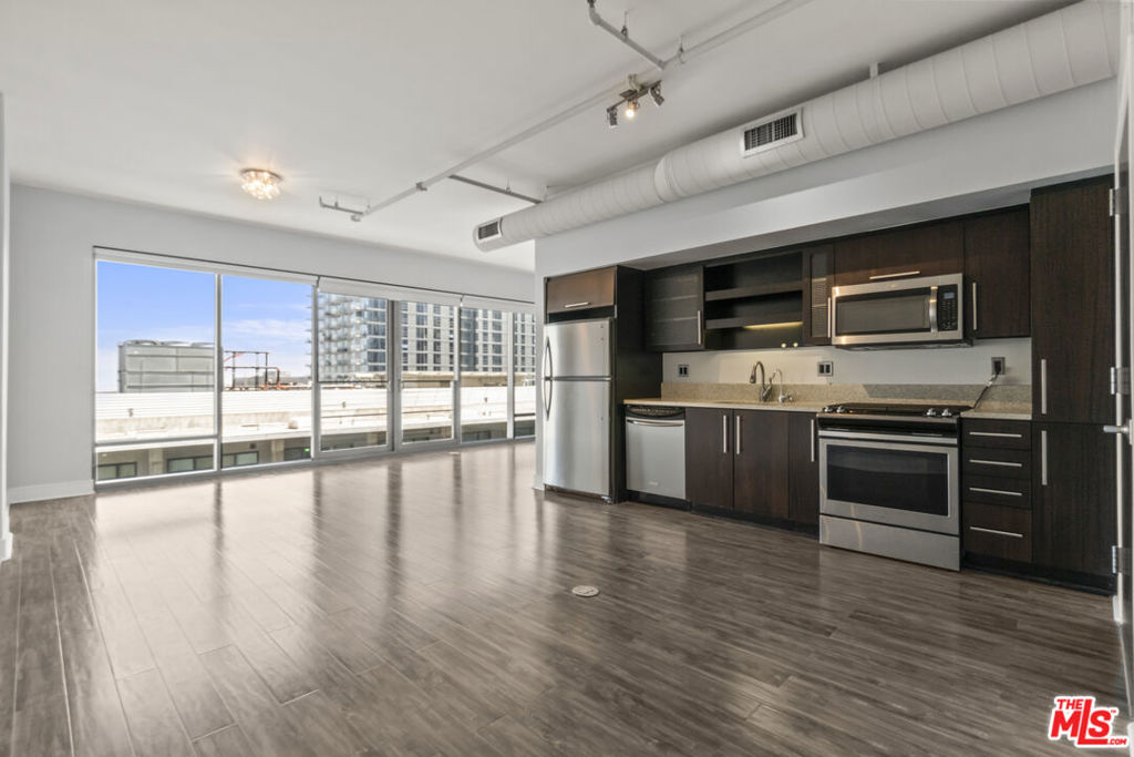Experience the sleek and stylish pied a terre at Luma South, perched on a high floor with breathtaking unobstructed East views. This modern unit boasts high ceilings, elegant laminate floors, stainless steel appliances, floor-to-ceiling windows, and the convenience of an in-unit washer and dryer. It's the ideal home for those seeking a comfortable and luxurious alternative to hotel living. Situated in the vibrant heart of South Park in Downtown LA, this full-service building provides unparalleled access to some of the city's most exciting attractions, including LA Live, Whole Foods, Crypto.com Arena, The BLOC, 7th and Fig, and the renowned Bottega Louie, among many others. Residents of Luma South enjoy a range of top-notch amenities, including a refreshing pool, a state-of-the-art gym, a beautifully landscaped barbecue area, controlled access, and the security of a 24/7 doorman in a LEED-certified green building. Additionally, one dedicated parking space is included with the unit. Discover the perfect blend of luxury and convenience in this exceptional Downtown LA residence.