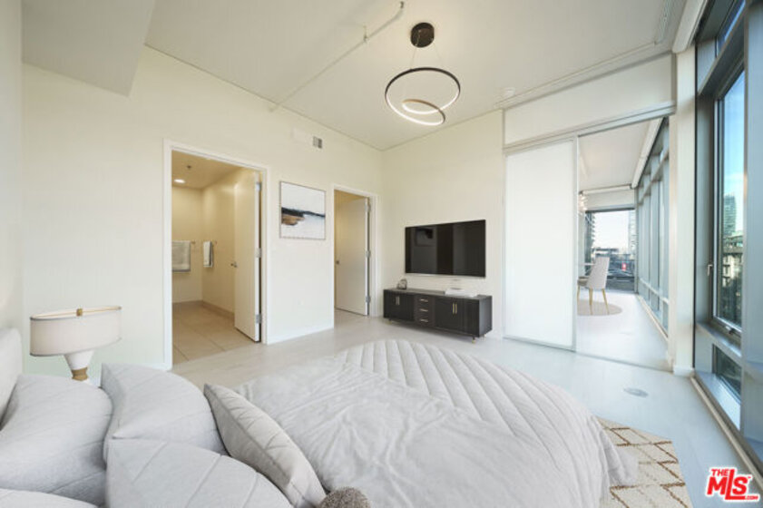 This stunning high-rise condominium, situated in the northwest corner, offers breathtaking north-facing views of the Downtown Los Angeles skyline, including the vibrant LA Live and Crypto.com Arena. LUMA, a LEED Certified GOLD building, features expansive floor-to-ceiling windows that bathe the interior in natural light by day, while the evening skyline presents a captivating display. The thoughtfully designed split-bedroom layout includes en-suite bathrooms for each bedroom, a third guest bath, and a spacious open kitchen equipped with a center island and wine fridge, ideal for entertaining. Recent enhancements such as fresh new paint, water-resistant SPC flooring, an automated blind system, and updated kitchen appliances and cabinets elevate the living experience. A private balcony provides a tranquil space for morning coffee or evening relaxation, complemented by stunning views. Additional conveniences include a utility room for a full-size washer and dryer, two assigned parking spaces with an EV charger, and easy access to the basement garage. Residents can indulge in resort-style amenities, including 24/7 front desk service, a fitness center, and a fourth-floor terrace with BBQs, a fire pit, pool, spa, and lounge areas, perfect for leisure or social gatherings. Embrace the LUMA lifestyle, where you can easily walk to Crypto Arena, concerts, shopping, and dining, as well as enjoy local bars, LA Live, the Farmers Market, or a film at the Alamo Drafthouse Cinema, all just steps from your door. Opportunities like this are truly rare, so come and experience it for yourself.