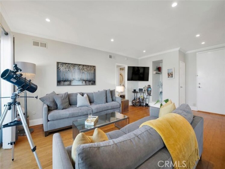 Perched above the city in the coveted Beverly Towers, this bright 1-bedroom, 2-bath residence offers sweeping city and hillside views and a flowing, open floor plan designed for both comfort and entertaining. An oversized living and dining area connects seamlessly to a spacious kitchen with abundant cabinetry, offering exceptional storage and functionality rarely found in a one-bedroom condo. Oversized windows and sliding glass doors flood the home with natural light and frame sweeping city and hillside views including the iconic Hollywood Sign. Step outside to an expansive private balcony that spans the entire length of the unit, creating an effortless indoor-outdoor lifestyle and the perfect place to unwind while taking in the city skyline. This highly sought-after building offers an impressive lineup of amenities, including a year-round heated pool and spa, fitness center with sauna, recreation room, earthquake insurance, and additional exterior storage all at $480 a month. The unit also includes two tandem gated parking spaces and a private storage area, a true luxury in this prime location. Situated directly across the street from Beverly Hills and just one block from Beverly Drive, you’ll enjoy immediate access to top-tier restaurants, cafés, grocery stores, and everyday conveniences — all while living in the desirable Beverly Hills adjacent neighborhood. Bright, open, and perfectly positioned with unforgettable views — this is a home that must be experienced in person!
