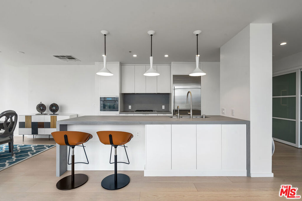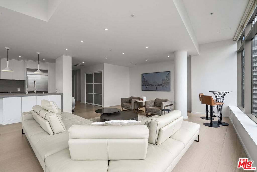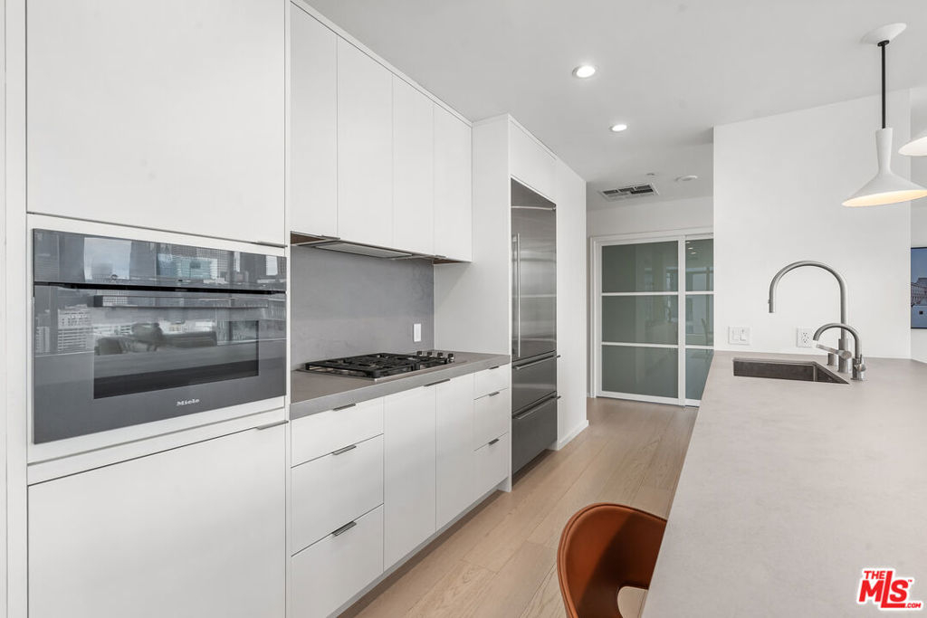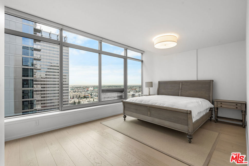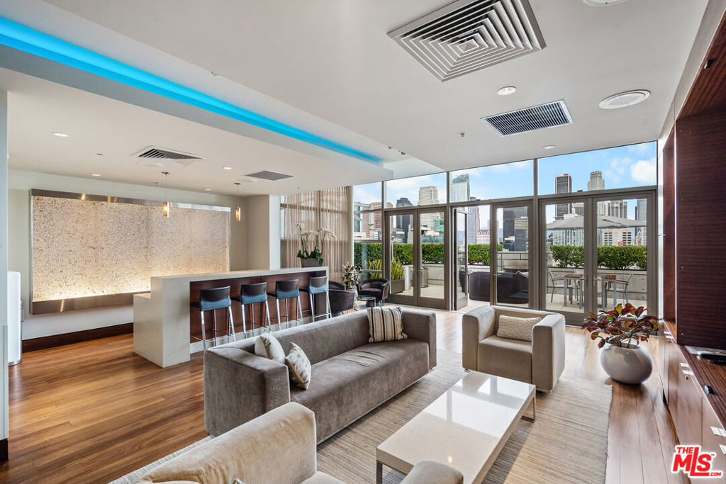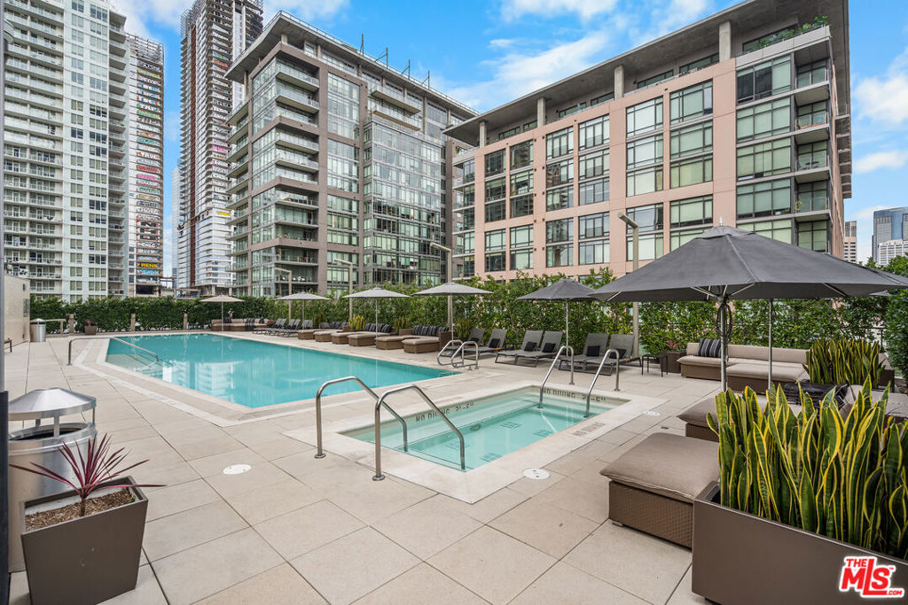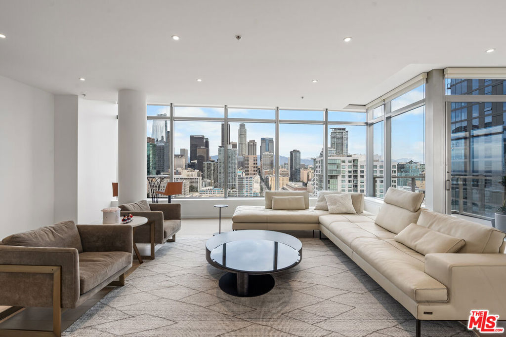 Experience elevated urban living at EVO, one of South Park's most iconic and sought-after modern high-rise communities. Completed in 2008 and LEED Silver certified, EVO is known for its sleek glass-and-steel architecture, contemporary design, and resort-style amenities that redefine Downtown Los Angeles living. Residents enjoy a stunning 6th-floor sun deck featuring a pool, spa, outdoor kitchen, lounge areas, and fireplace, along with the sophisticated rooftop resident lounge on the 24th floor, offering panoramic skyline views. Additional amenities include a state-of-the-art fitness center, 24-hour security, concierge services, and secured gated parking delivering both luxury and convenience in a full-service building. This rare northeast-facing corner residence offers breathtaking, unobstructed Downtown skyline views and is filled with natural light throughout the day. Expansive floor-to-ceiling windows and soaring approximately 11-foot ceilings create a dramatic sense of openness and volume, enhancing the airy, loft-style ambiance. The highly desirable corner orientation provides both privacy and dynamic city views from multiple vantage points. Fully remodeled within the past two years, this residence has been thoughtfully upgraded with high-end designer finishes, renowned luxury brand materials, and eco-friendly improvements. The modern kitchen features premium appliances and refined detailing, seamlessly blending functionality with style. Carefully selected finishes throughout the home create a sophisticated yet warm atmosphere, offering a perfect balance of contemporary elegance and everyday comfort. Move-in ready and impeccably maintained, this turnkey home presents a rare opportunity to own a fully upgraded corner unit in one of Downtown LA's premier lifestyle buildings ideal for those seeking design, views, and elevated city living all in one.