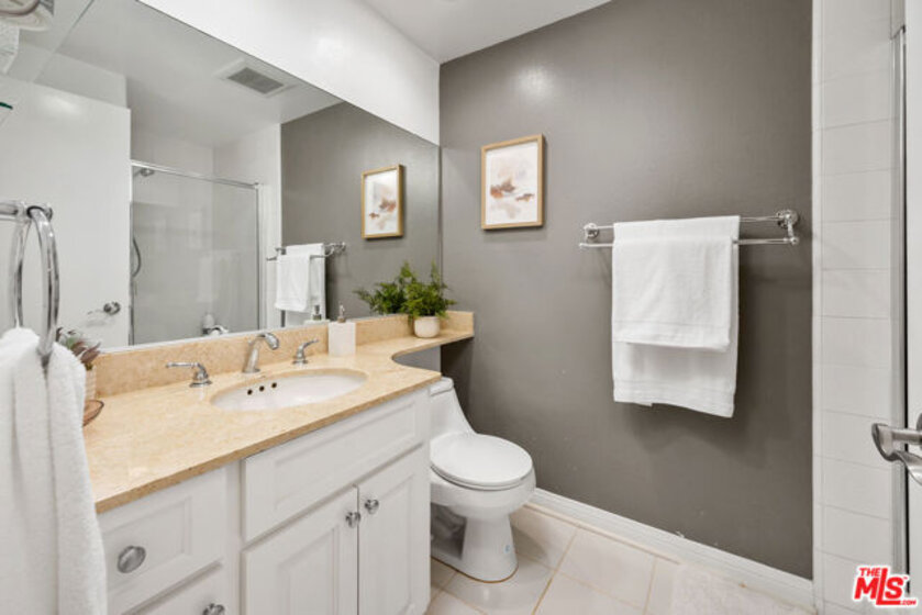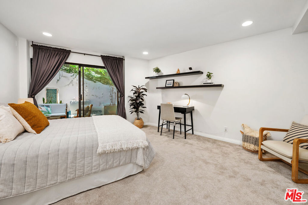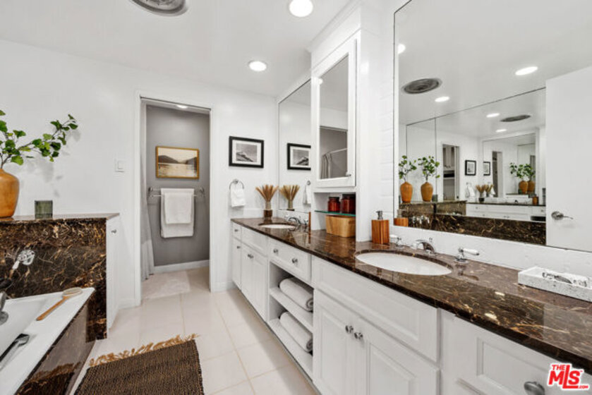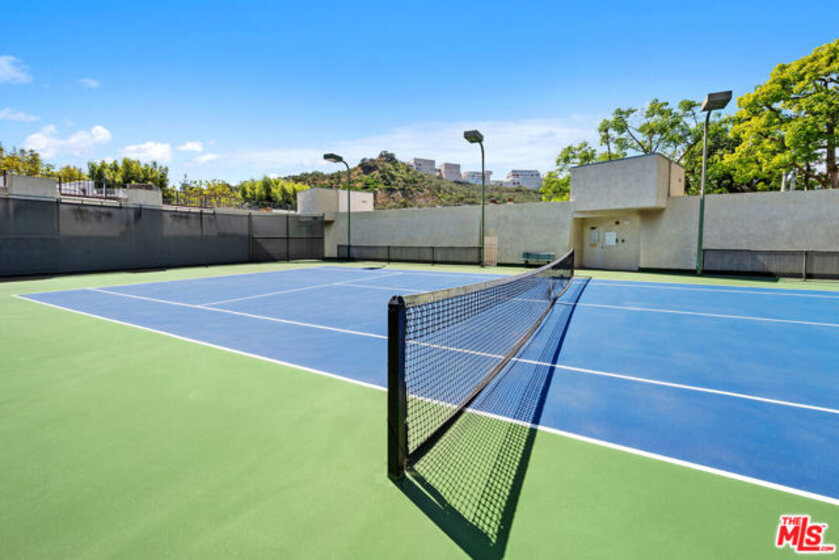 Bel Air Condominium off Moraga & Bellagio!! This unique unit features a front courtyard along with a rear yard totaling +-330 square feet of additional outdoor living space! Step in from your private courtyard to a beautifully redone 1,651 square feet of living space that lives more like a home than a condominium with the Private Front Patio and Rear Yard. The front floor-to-ceiling windows and glass door lead to a beautifully appointed interior with bamboo floors greeting you. Residence highlights include a large living room with fireplace separating two large living spaces, a remodeled open concept kitchen, large dining room, breakfast bar, eat in kitchen, and loads of storage closets, pantry space, in unit washer/dryer, powder room, central heat & air, and two side x side parking spaces with EV 240 Volt charging hookup. The building features a freshly redone rooftop tennis court, heated pool, his and hers saunas, bathrooms, and community room for entertaining, guest parking, and lush mature trees and garden grounds. The redone kitchen features butcher block counter tops, all stainless appliances including double ovens. Walk down the hallway lined with abundant closets and built-in storage to two bedrooms with their own en-suite baths. The primary features a large walk-in closet, double vanities, and a separate spa tub and shower. The second oversized bedroom features its own bath with shower and loads of closet space. This 16 unit building is in the perfect setting and location, close to everything city, yet feels like a world away when inside. Located in the prestigious Roscomare Road school district with Harvard-Westlake and Buckley nearby. A must-see best deal on the westside. Ideally positioned off the 405 frwy close to Brentwood, Beverly Hills, Westwood, UCLA, and Valley Neighborhoods, This residence blends seclusion, livability, and convenience in a highly sought-after Bel Air.