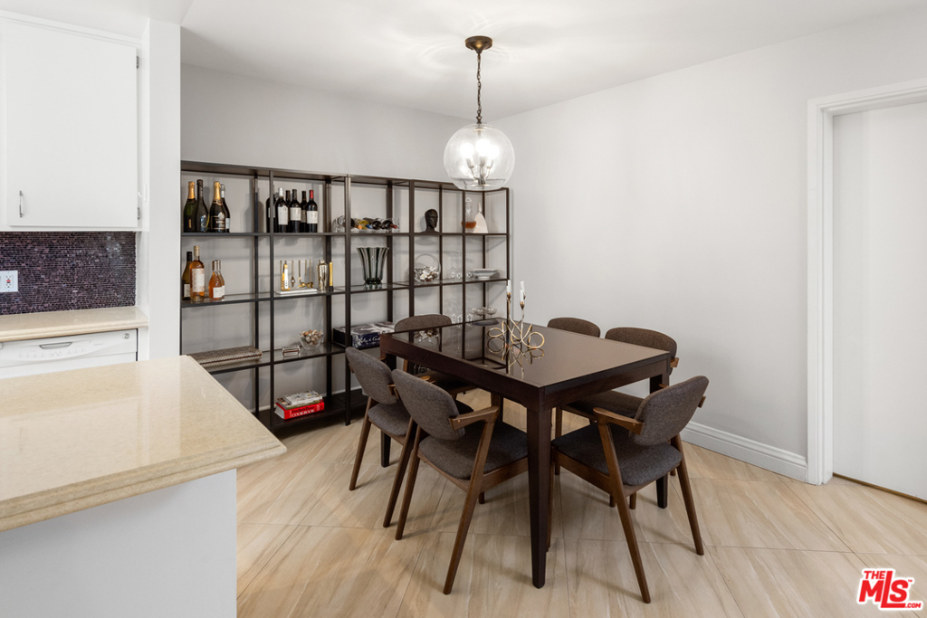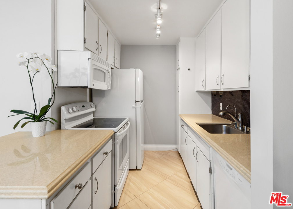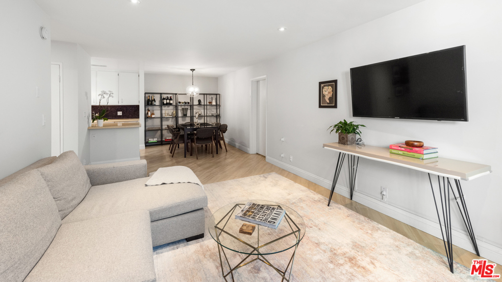 Located in a prime location steps away from the Four Seasons Beverly Hills, this 2 bedroom, 2 bath condo is the epitome of move-in ready. Boasting updated finishes and a generous floor plan, this sophisticated space is the perfect balance of style and practicality. The living and dining room seamlessly open to a private balcony overlooking the courtyard. The modern kitchen is light and bright and equipped with a charming breakfast bar. Upgrades include luxe stone floors, new sliding glass doors in both the living room and primary bedroom, and recessed lighting. The primary suite features a large walk-in closet, an oversized, newly remodeled shower, ample space for a home office, and a bright second balcony. Complete with a large secondary bedroom and bath, 2 gated parking spots with private gate and additional assigned storage space above.