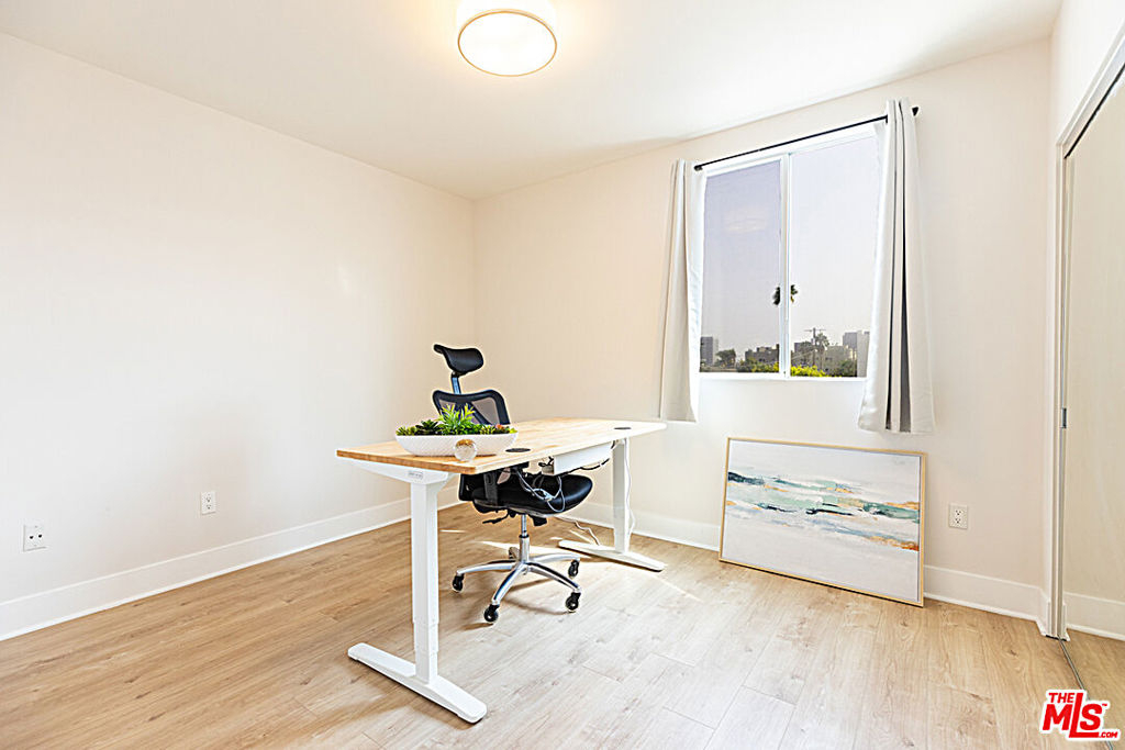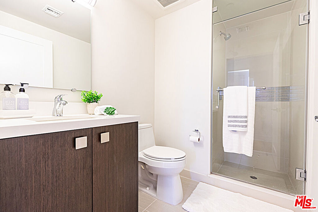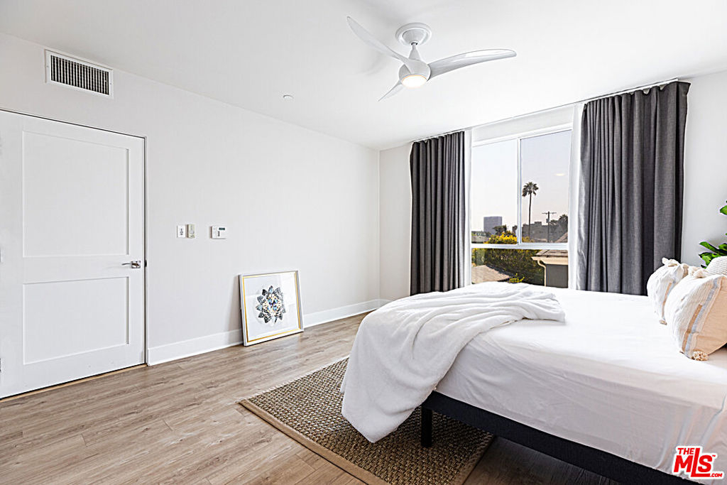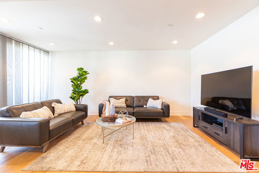 Pristine Los Angeles Pied-a Terre with a great floorplan! Move right in to this gorgeous, light, bright and spacious, contemporary condo in a secure building and a fantastic location in the heart of the city! Built in 2013 with a warm, organic style and high end finishes such as wide-planked French Oak floors, Italian Porcelain Tile, Double paned windows, Stainless Steel appliances, Sub Zero refrigerator, Wenge Wood cabinets, Grohe bath fixtures, frameless glass showers, an open floorplan and a large capacity washer/dyer. Enjoy your morning coffee on the balcony with views of the city and hills. Sunlit master suite has organized, walk in closet. Bedrooms are spacious, with organized closets and their own bathrooms. 2 bathrooms are ensuite. Private end unit. Central AC and Heat. Low HOA monthly fee includes community rec. room with kitchen, ping pong table and sun deck with city views. 2 tandem parking spaces in gated garage. Gated building with keypad access. Close and convenient to Cedars Sinai and all the wonderful shops, cafes and restaurants on 3rd Street and Beverly Blvd. This is a rare unit to enjoy for years to come!