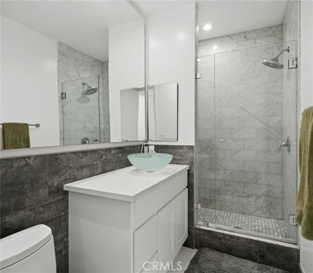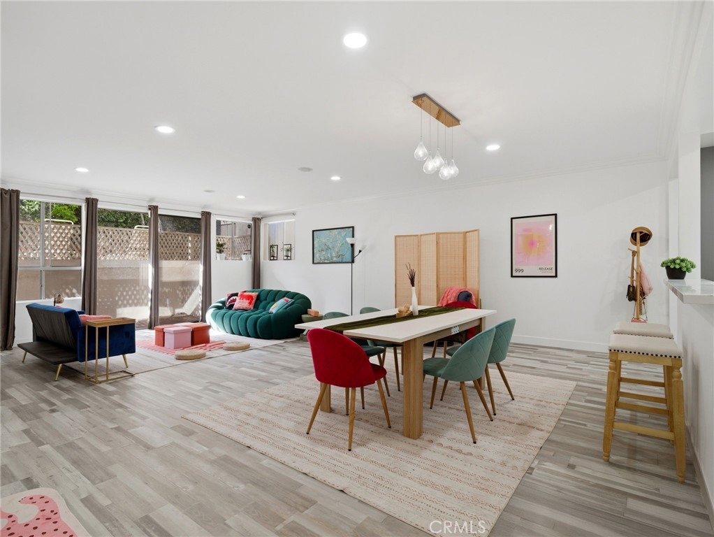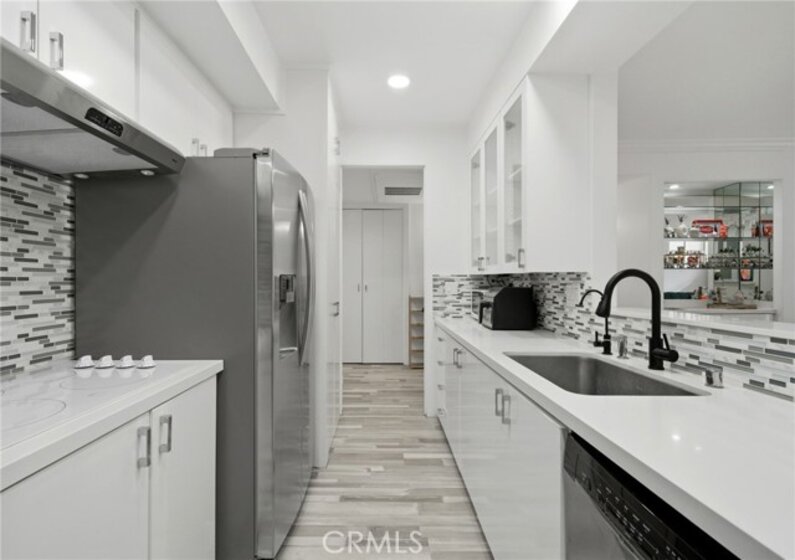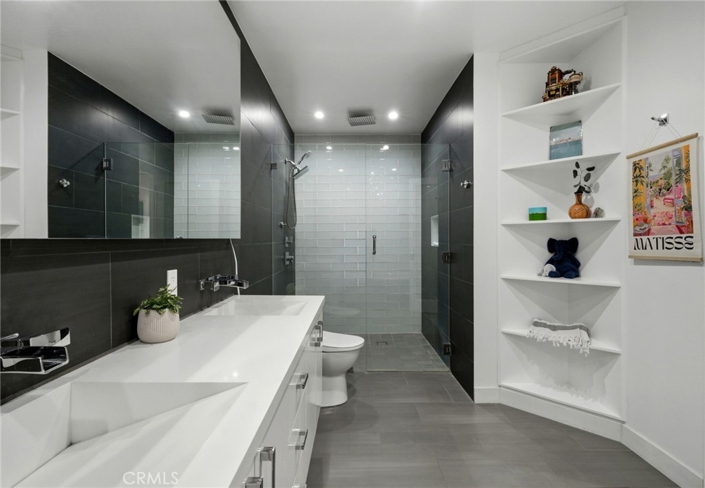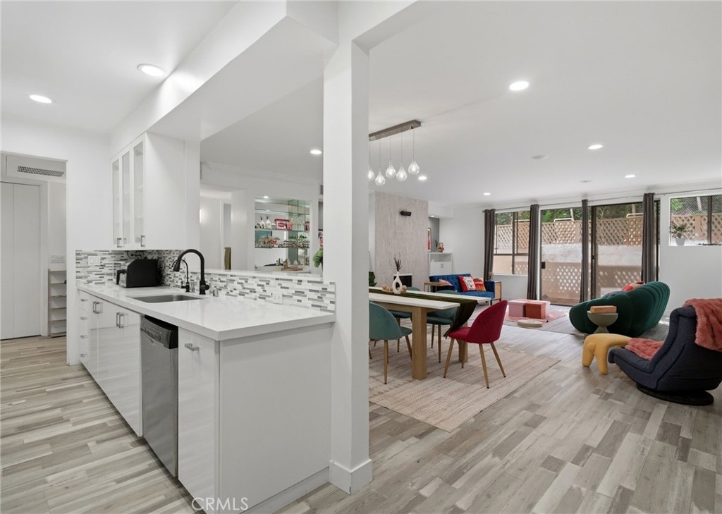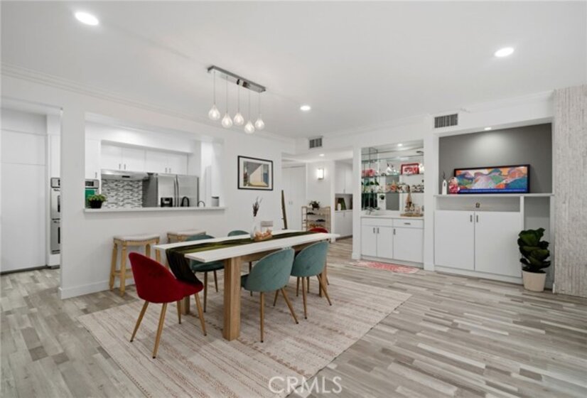 Welcome to 1277 Beverly Glen Blvd #107, a beautifully remodeled 2-bedroom, 2-bath residence ideally located in the highly desirable Westwood / Century City corridor. A rare blend of space, style, and convenience, this home offers the feel of a private retreat with the ease of condo living. A striking double-door entry opens to a welcoming foyer with a generous coat closet, setting the tone for the spacious, open-concept floor plan beyond. The light-filled living areas are thoughtfully designed for both everyday living and entertaining. High-end finishes include Italian wood-look porcelain tile, quartz countertops, stainless steel appliances, dimmable recessed LED lighting, and a theater-quality surround sound system. The living room features a cozy fireplace, crown moldings, and a stylish wet bar—perfect for hosting. The expansive primary suite is a true retreat with its own fireplace, a walk-in closet with custom built-ins, and a resort-style bathroom featuring a custom double-sink vanity, dual rainfall and standard shower, and an oversized Jacuzzi soaking tub. One of the most exceptional features of this residence is its oversized private patio, offering approximately 500 square feet of outdoor space—a rare find in condo living on the Westside. Accessible from both the living room and primary suite, the patio functions as an extension of the home, creating a seamless indoor-outdoor lifestyle. Ideal for entertaining and pet-friendly living, the patio offers space for outdoor dining, lounge seating, grilling, and daily pet use—delivering the feel of a small backyard with the convenience and security of condominium living. This versatile outdoor space is especially appealing for buyers seeking private outdoor access in an urban setting. Additional highlights include a well-appointed second bedroom and bath, ample storage, and thoughtful details throughout. The community offers a pool and fitness center, with easy access to Westwood Village, Century City, UCLA, shopping, dining, and major commuter routes. Move-in ready, light-filled, and truly one of a kind—this is refined Los Angeles living at its best.
