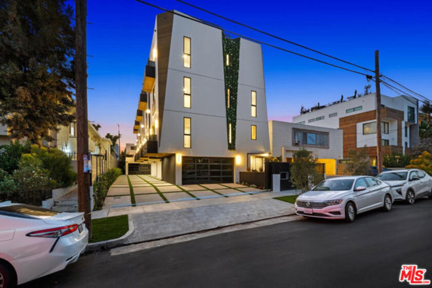 Introducing an exclusive collection of five newly built, gated small-lot residences in the heart of West Hollywood. Each has its own address. This is the ONLY home currently available, offering a rare opportunity to own within this limited enclave. Thoughtfully designed for modern living, this sophisticated three-bedroom residence spans four levels and features a bright, open-concept floor plan with soaring ceilings, recessed lighting, custom flooring, and refined millwork throughout. The designer kitchen showcases premium white-and-gold appliances and sleek finishes. It flows seamlessly into the expansive living area, complete with an electric fireplace perfect for both everyday living and effortless entertaining. The luxurious primary suite serves as a private retreat, featuring a spa-inspired bathroom with a soaking tub, glass-enclosed shower, dual vanities, and an oversized walk-in closet. Enjoy multiple private balconies and terraces, crowned by a stunning rooftop deck with a built-in BBQ and outdoor kitchen ideal for entertaining or unwinding under the stars. Select residences offer sweeping city views, including Downtown LA, the Hollywood Hills, the Hollywood Sign, and Griffith Observatory. Additional highlights include an in-unit washer and dryer, Ring system setup, integrated sound, fire sprinklers, gated entry, and secure garage parking. Located just moments from the vibrant shops, restaurants, and markets of West Hollywood and Hollywood, this home offers unparalleled access to the very best of Los Angeles living. *Select floor plans*; buyers must verify.