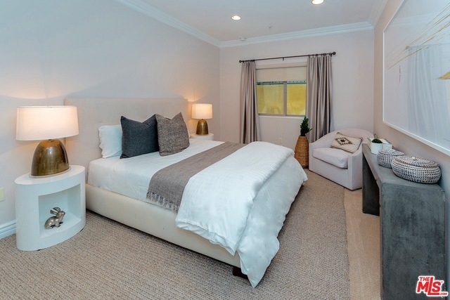 Impressive 3 bedroom 2.5 bath rear corner unit with the best of California indoor/outdoor living & an enormous wrap-around patio ideal for entertaining! Great location, functional/open floor plan, spacious eat-in gourmet kitchen w/ Viking Stove, Vera Gold counters & Italian cabinetry. Master bedroom boasts 2 walk-in closets, luxurious spa-like master bathroom w/large shower, soaking tub, and double sinks. All baths feature Italian Noche counter-tops. New hardwood floors and carpet in the bedrooms. In-unit laundry closet, gas fireplace & 2 parking spaces. The building has Secured Access, Fitness Center & Earthquake Insurance. Great Location! 2 blocks from Robertson's trendy restaurants & shopping, Beverly Hills adjacent, a short walk to the Beverly Center, West Hollywood night life, Bristol Farms & Cedar Sinai. (Gated outdoor patio not deeded to the unit. Seller & sellers agent do not guarantee, square footage, lot size, or any other details. Buyer to verify all and satisfy themselves.)